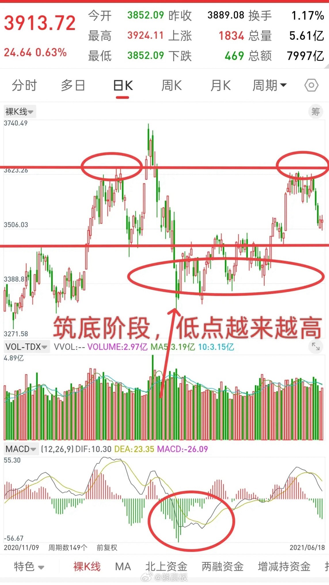 行情相似吗?太像了吧,所以下周继续看补缺口3955,应该是大概率的,补完之后,可能还会回调,然后再拉升,同样会反复洗盘,最后筑底结束,往上反攻。