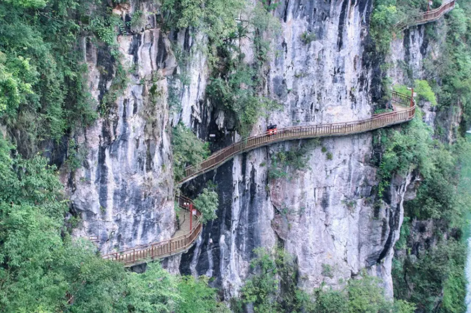 现代旅游设施巧妙融入自然:玻璃栈道延伸于绝壁,行走其上如踏云端;天空悬廊俯瞰三江汇流,惊险中饱览"东方卢森堡"的壮阔。亲子游客可沿平缓步道寻觅野趣,摄影爱好者则能捕捉晨昏时分峡谷的光影变幻。景区内酸汤鱼、竹筒饭等地道美食,更让旅程充满烟火温情。
