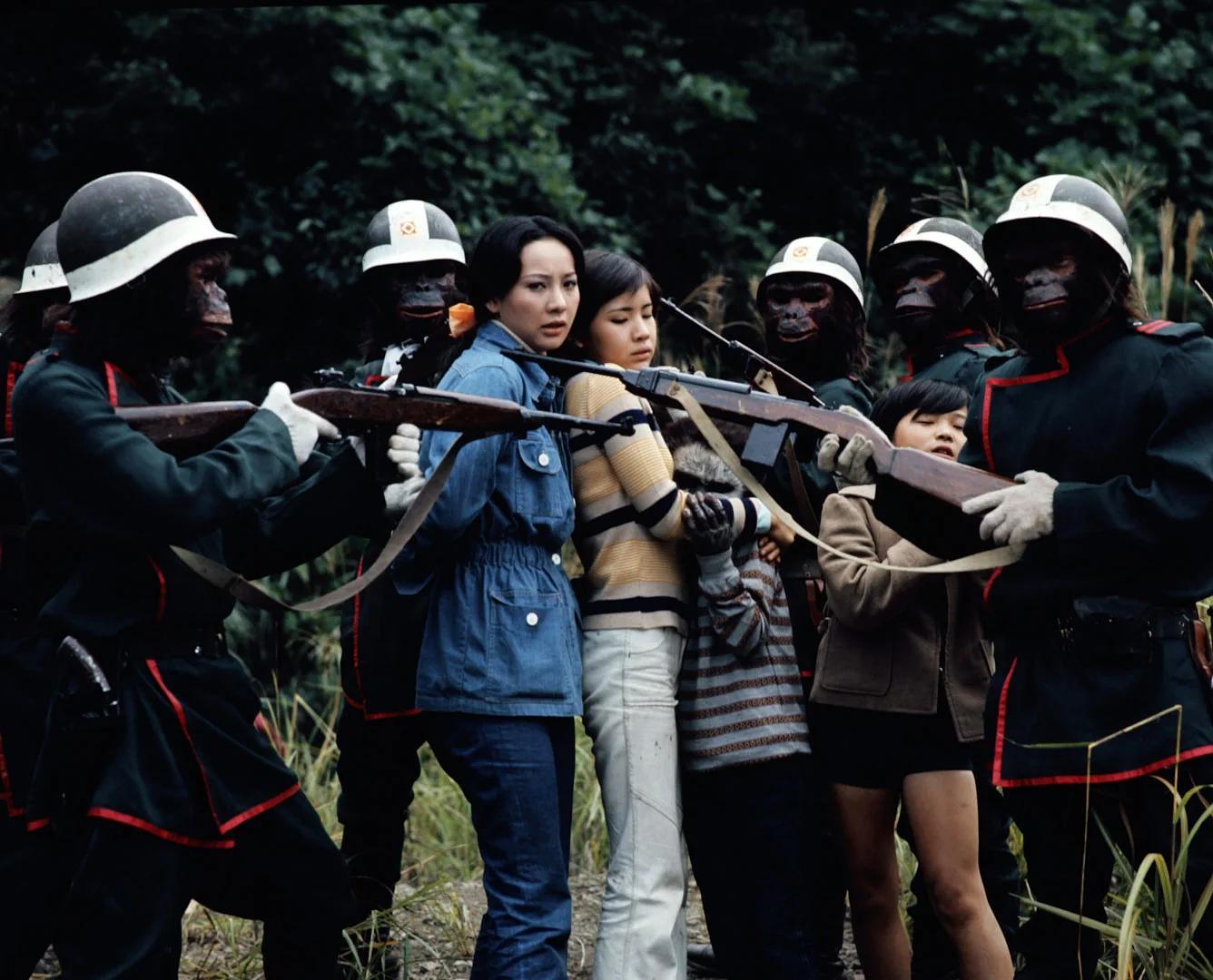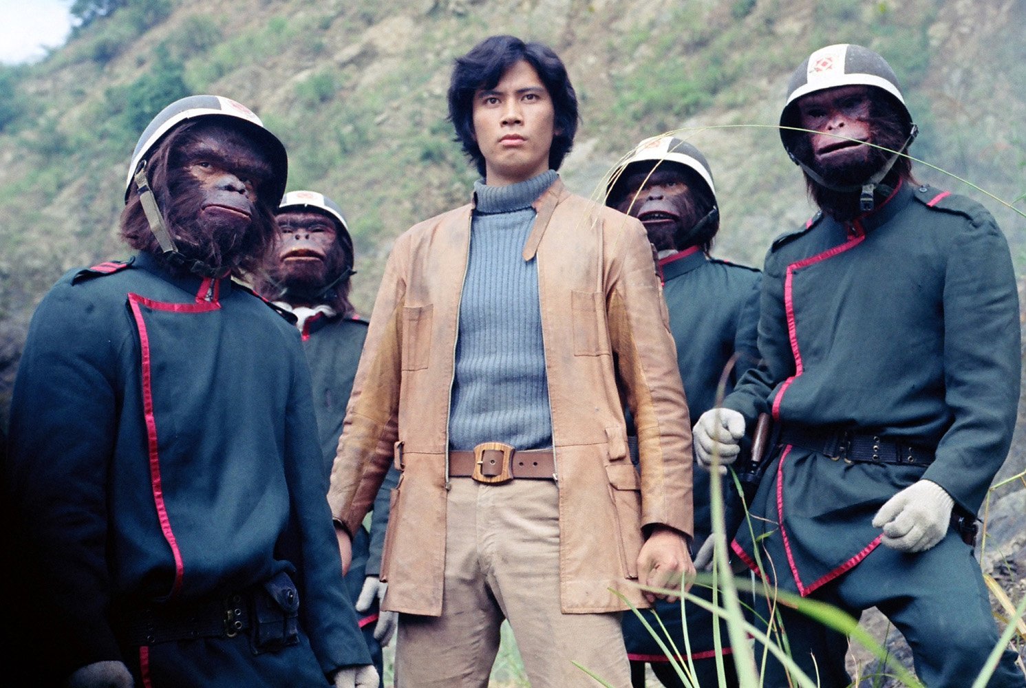 【来自投稿】1974年日本科幻特摄电视剧《猿人军团》剧照,共26集,由圆谷株式会社出品,日本版的“人猿星球”,主打末日、反乌托邦、人类文明反思。本片在80年代,打算跟《恐龙特急克塞号》一起进入中国山西电视台播放,但因为海外版权分散,且台词、世界观更复杂,译制成本与人力翻倍,题材是人类被猿人统治、人猿对立、暴力冲突、末世逃亡,有大量猿人压迫人类、血腥打斗、社会隐喻内容。但山西台只能优先选一部,最终选了更安全、更易火的《克塞号》。