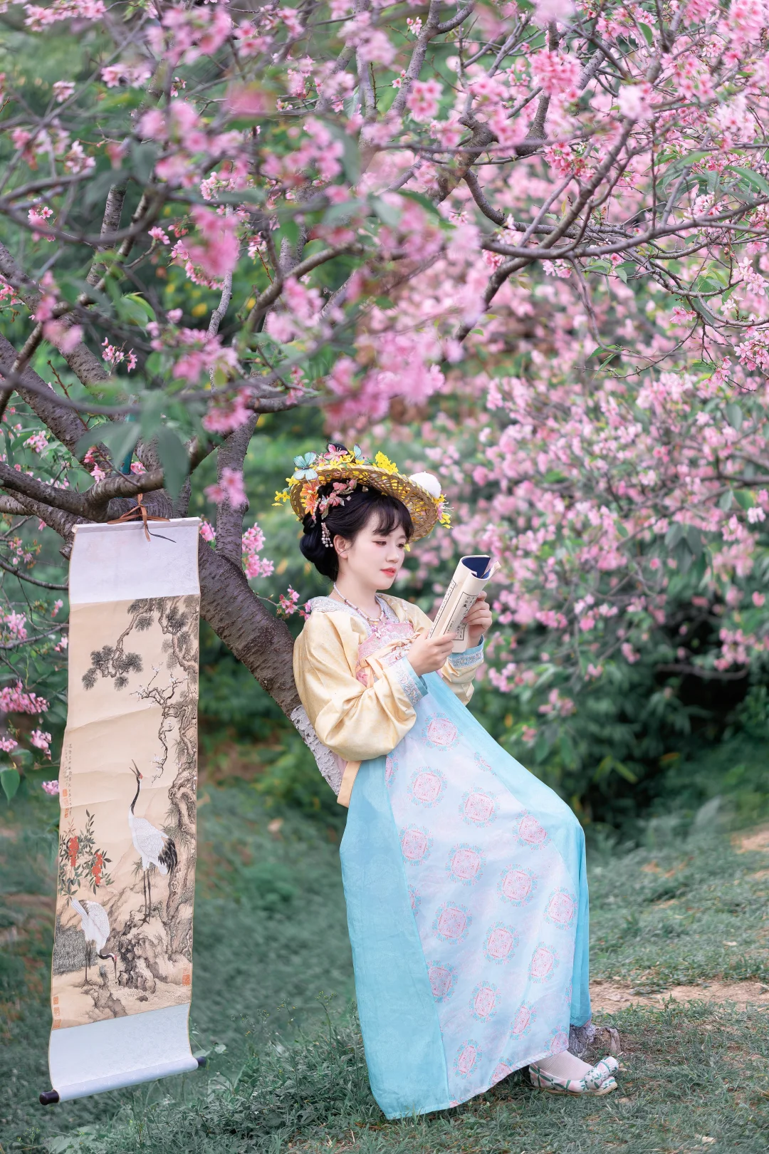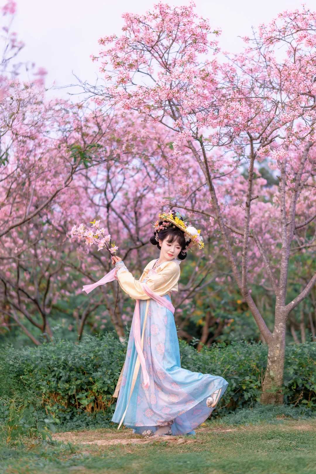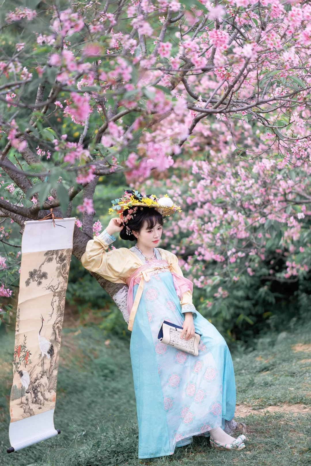 春暖花开, 终于等到广州的樱花开花了,好美; 汉服与樱花的匹配度100%, 坐在河边拍照,这样的景色太喜欢了; 喜欢樱花的,快来赏花吧; 这周应该是观赏期; 📍:广州海珠湿地公园(靠近南门,别从北门进哦);