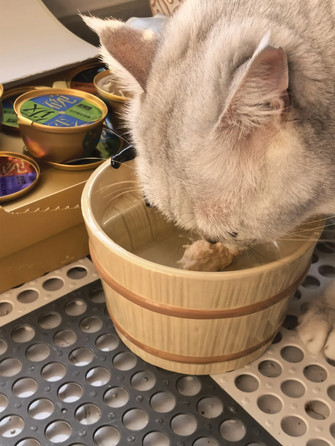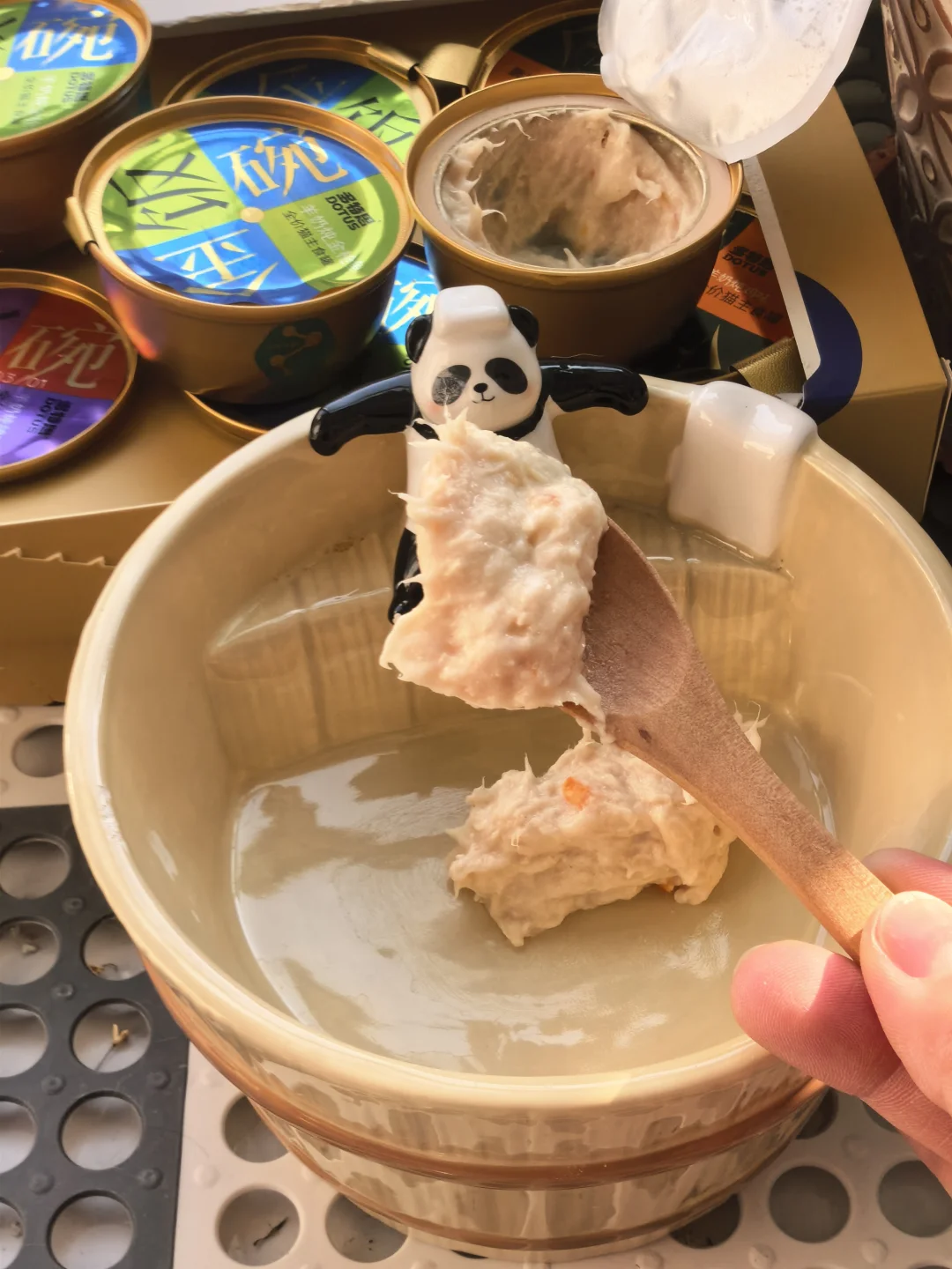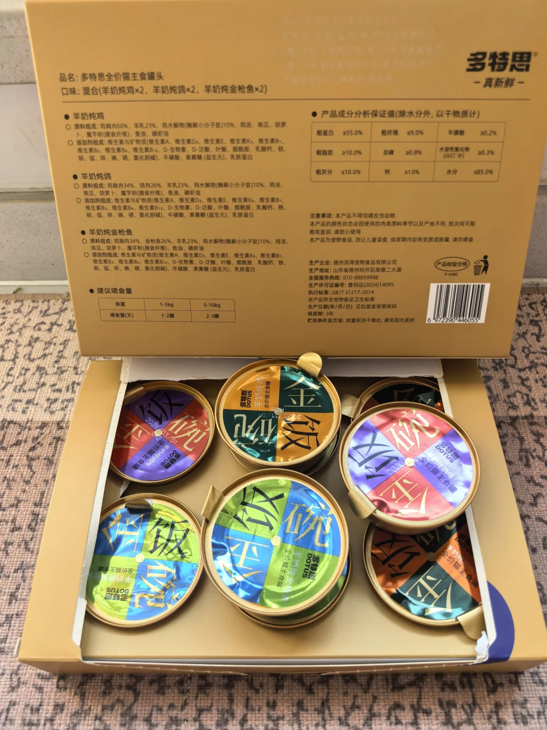 先说重点:这罐是用羊奶炖的,不是把肉泡在奶里敷衍我。 打开就能闻到奶香混着肉味,质地像奶糊,不是那种稀汤寡水的。 我家猫喝第一口的时候愣了一下——估计在想“今天这顿怎么这么懂事”。 高肉奶含量,我加了一点点水搅开,它全喝光了,碗都不用洗。 相当于一边吃肉一边把水也补了,骗水这事它没察觉,我偷偷赢了。 多特思多特思金饭碗猫咪主食罐猫罐头猫咪日常猫咪补水养猫好物