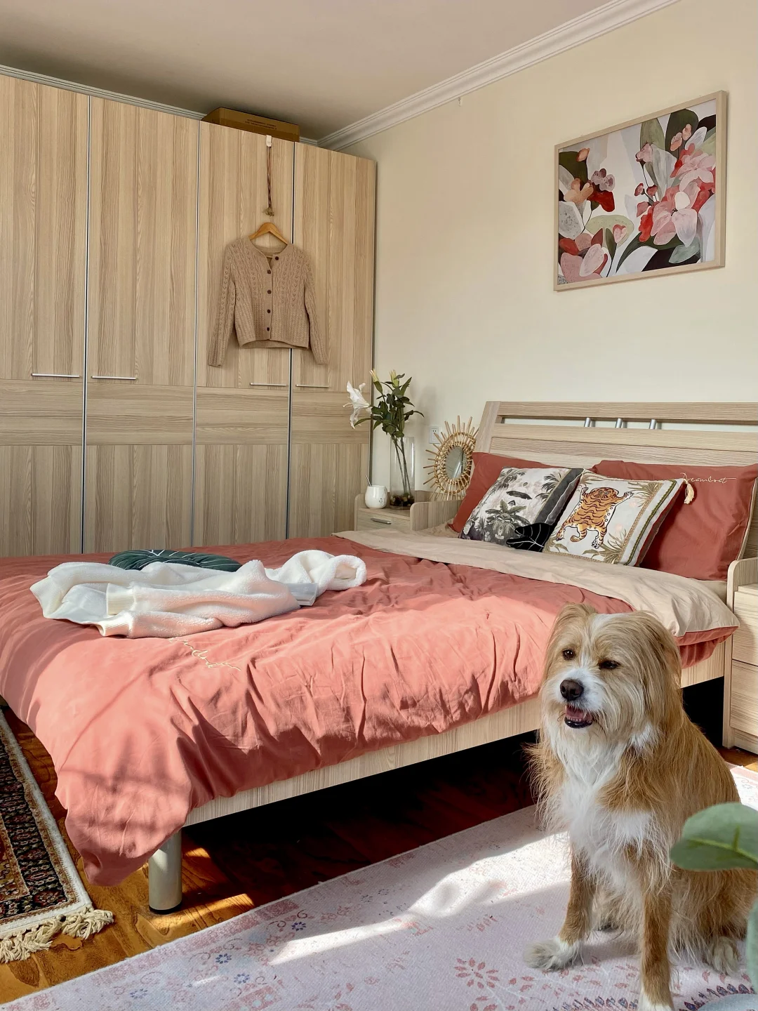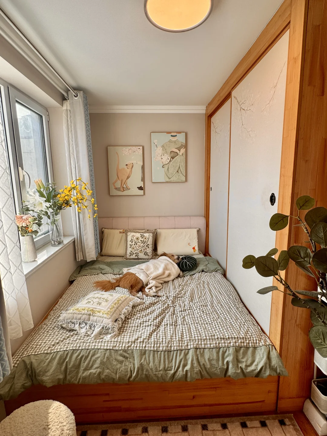 这个家很小,两室一厅一厨一卫,总共加起来不到60平,女主人是我60岁的麻麻和一只蓝猫,有时候还有我和一只中华田园狗狗哈哈哈哈哈 平时我回家住的时候,就睡小次卧,别看我的小次卧很小,但是做成了榻榻米卧室之后,变得特别有安全感,这种三面包围的格局,睡觉时麻麻再也不用担心我掉下床[大笑R] 其实整个家,都是麻麻一手操办的装修和布置,装修就是简约的日式风格,木质家具,但是被她布置的很温馨!处处都能看到她热爱生活的痕迹。每次回家住我都会感到很放松[害羞R] 所以房子真的不需要很大,适合自己就行!