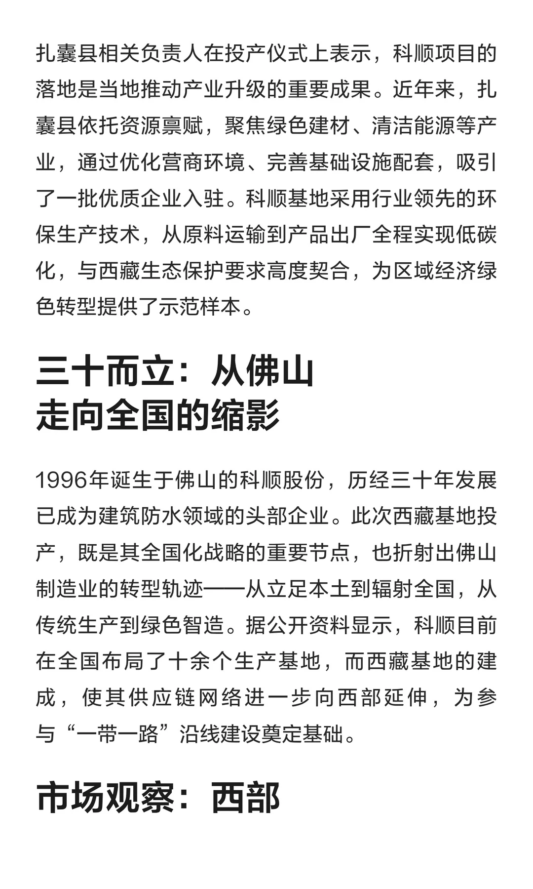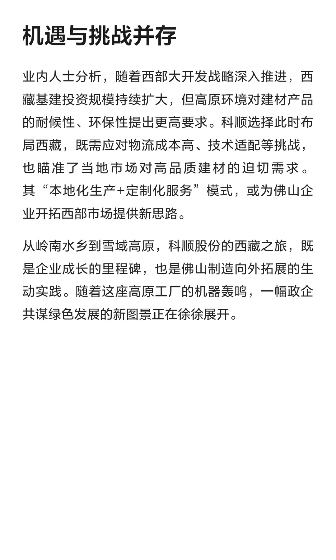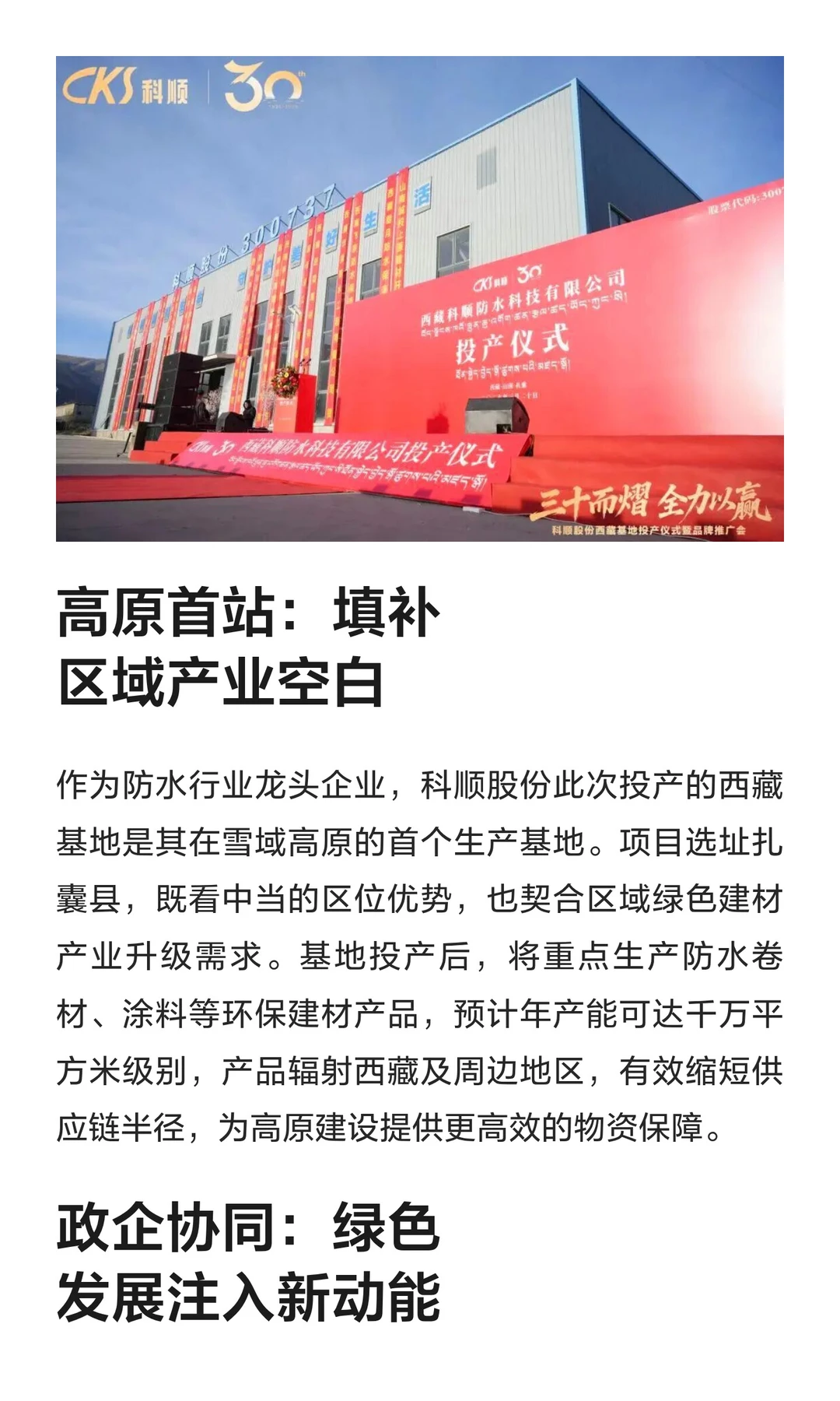 佛山知名建材大厂西藏基地投产