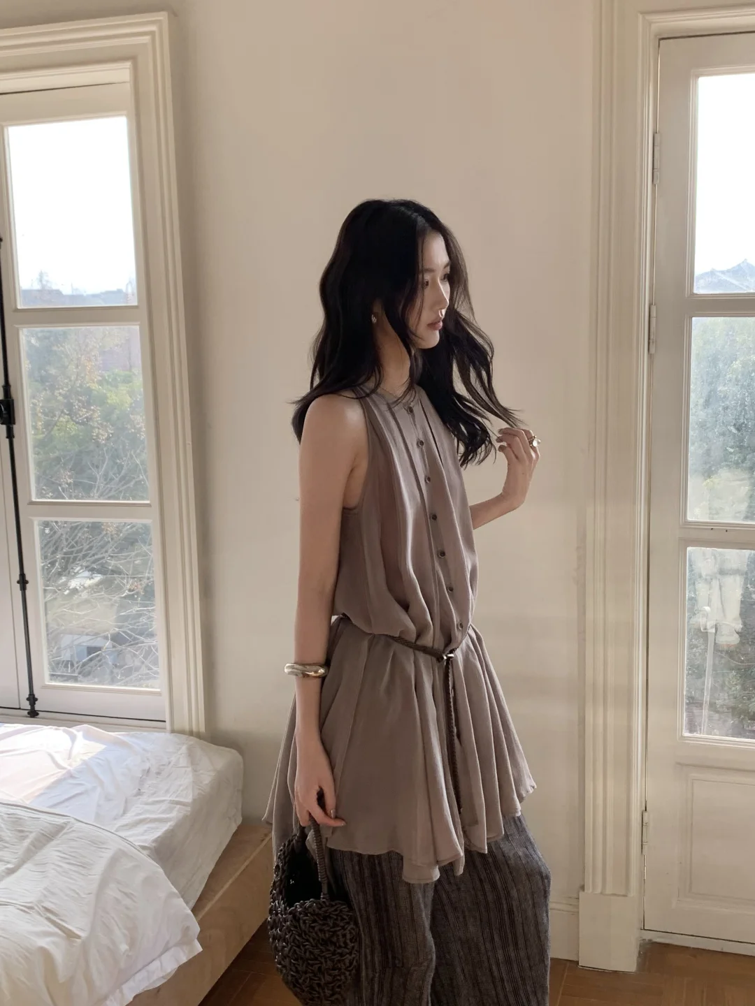 气质优雅,灰色连衣裙穿搭,轻松展现迷人魅力!🌟✨