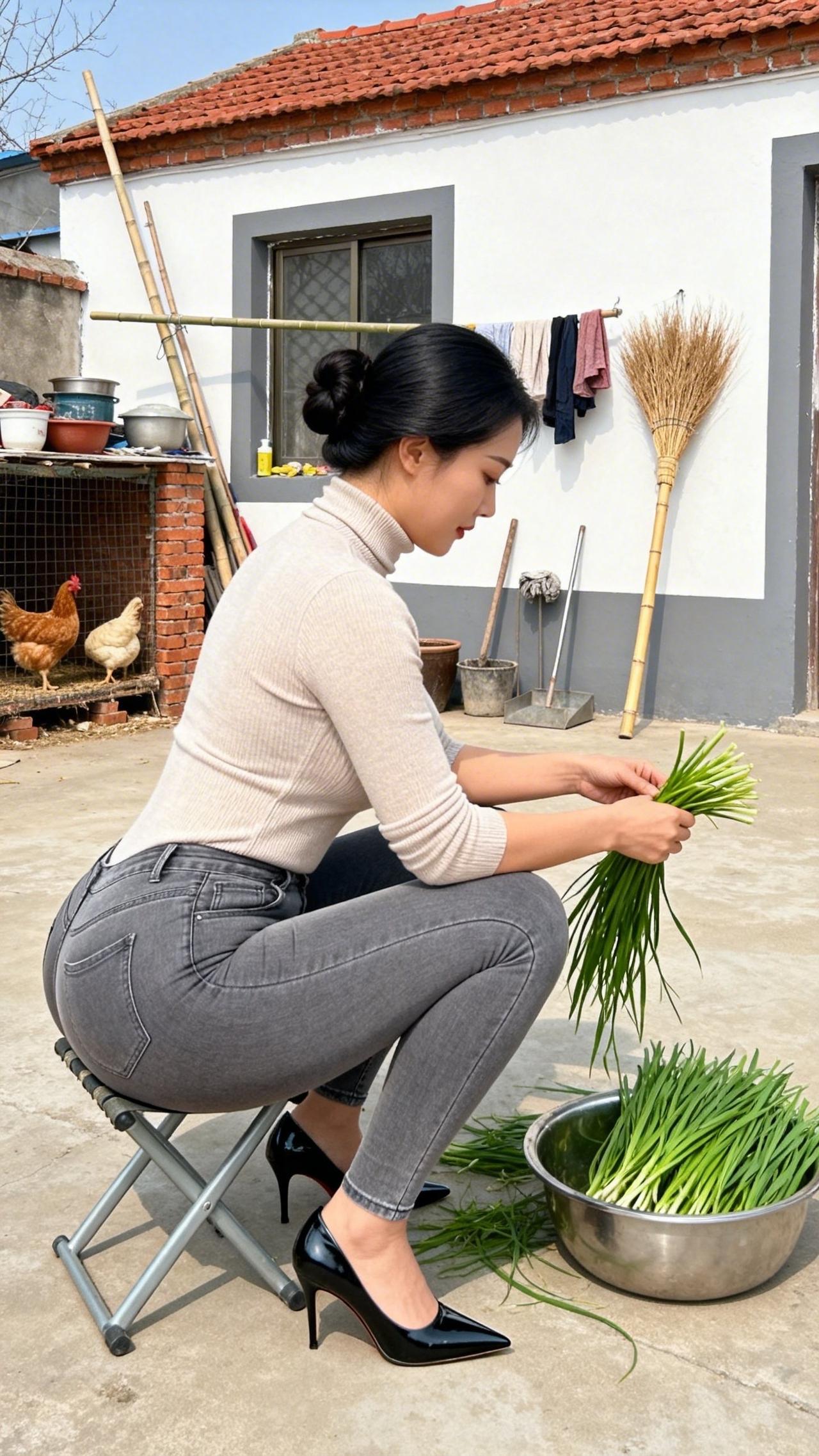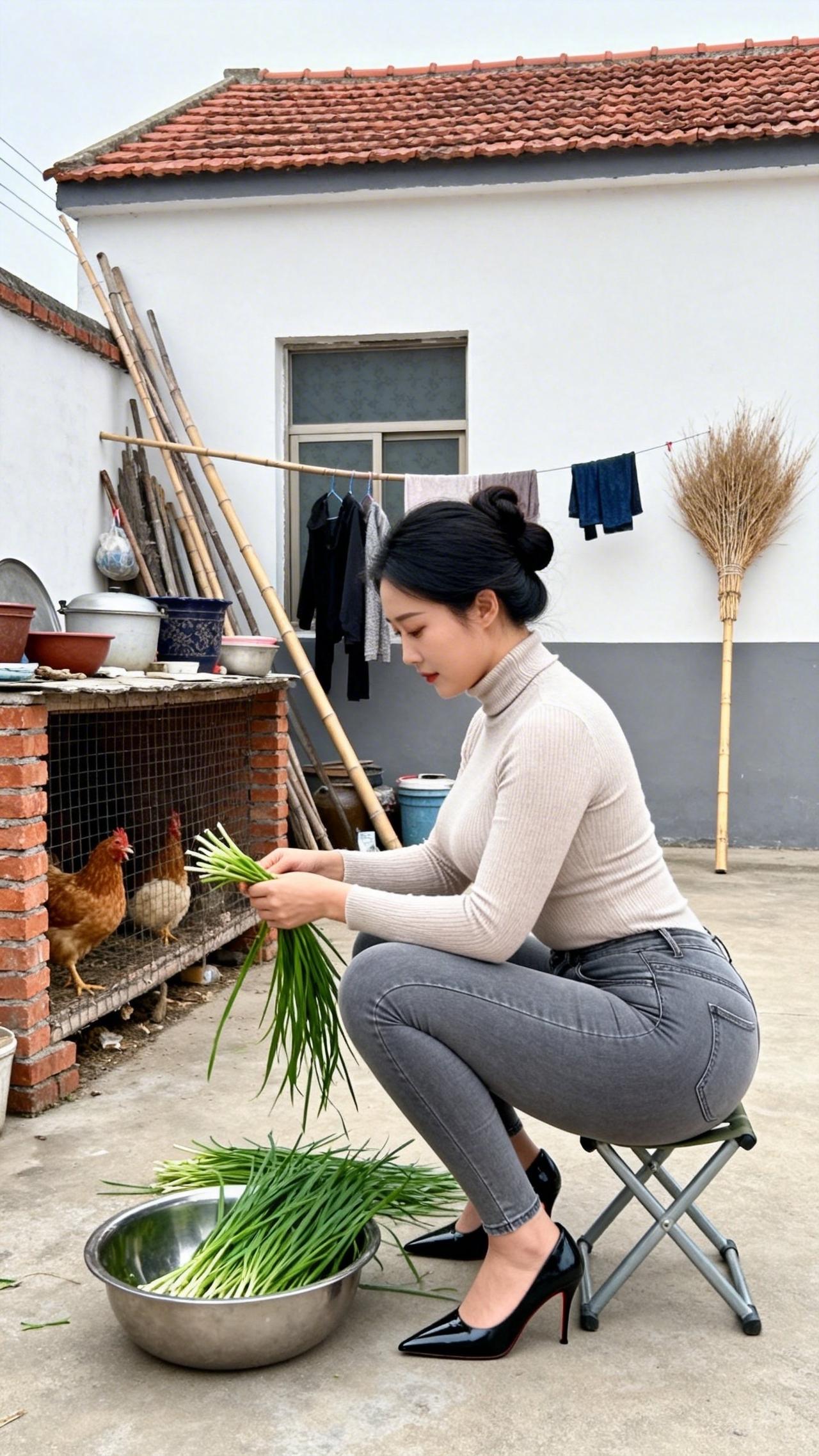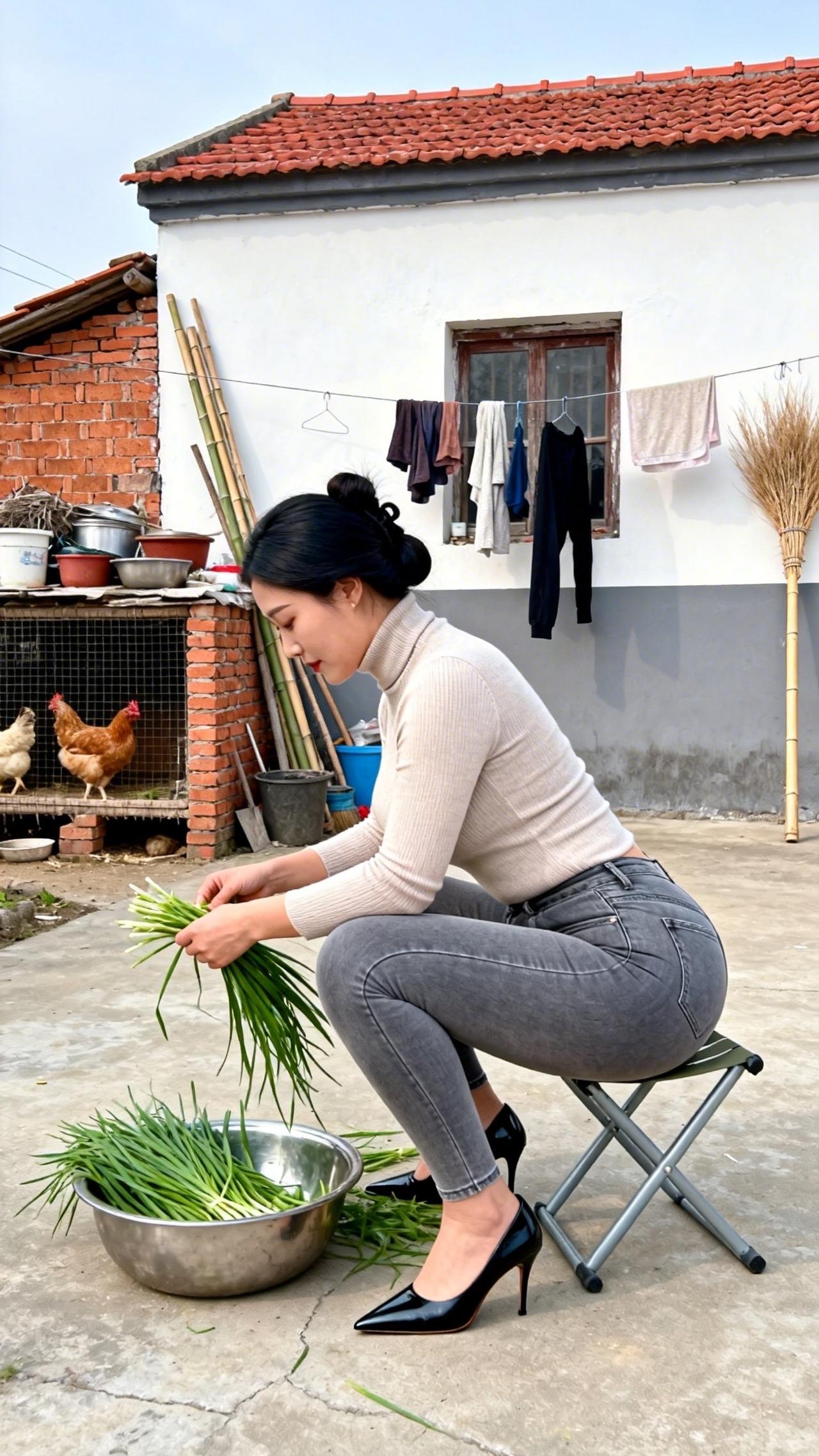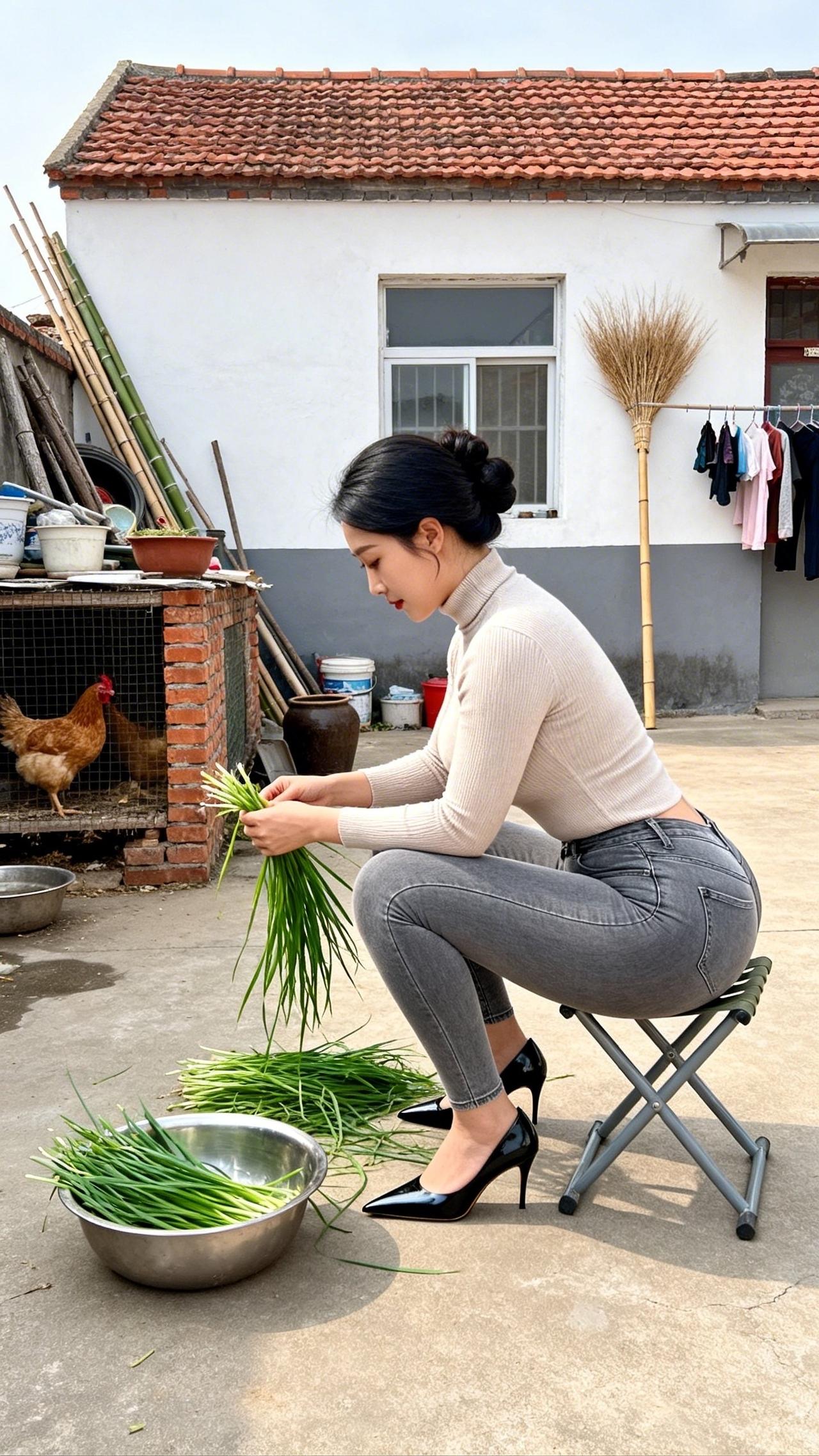 庭院的风裹着烟火气漫过,指尖轻理鲜翠的青韭,把日常的温柔揉进每一片叶瓣里。檐下鸡群闲踱,木凳与旧屋承载着乡居的踏实,将这份择菜的细碎时光,晕染成最动人的诗意。阳光在院坝洒下暖光,水珠在叶尖轻颤,把烟火人间的安然与松弛,都酿成心底最踏实的暖意,让时光在这一方小院里慢慢流淌,沉淀出岁月最温柔的模样,给寻常日子添上一抹治愈的清甜。农村