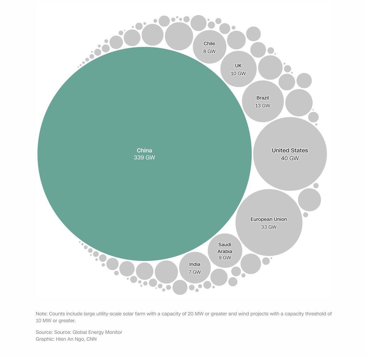 这张图表表示,中国目前在建的风能和太阳能发电装机容量为339吉瓦,约占全世界总装机容量的三分之二。无论从哪个严肃的角度来看,中国都在引领清洁能源革命。 美国以色列与伊朗之间的“霍尔木兹海峡战争”正在给全人类的能源供应造成了灾难性后果,但也给中国健全的新能源产供链带来更大的机会,而且地球上的风力和太阳能还是无限的——但是,不得不说,获取它们能量的技术却是稀缺的,好在中国已经完全拥有了。 “石油美元”已经开始落幕了,“电力人民币”正在冉冉升起,很有可能再过几年,人们还会意外地发现,缺少了石油供应的生活可能更加美好,中国人现在已经为那时候全世界人民的生活方式转型做好了充分准备。 衣食住行,一应俱全,中国制造,而且廉价,更不会受到霸权主义的欺负。