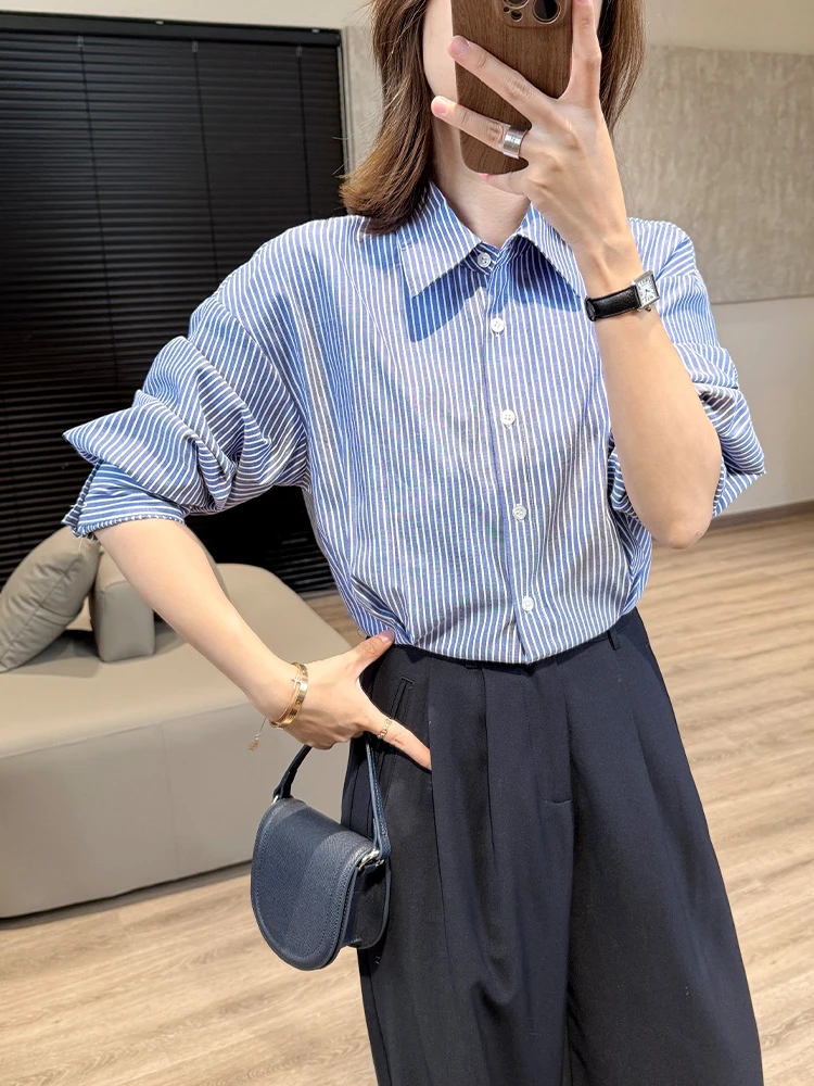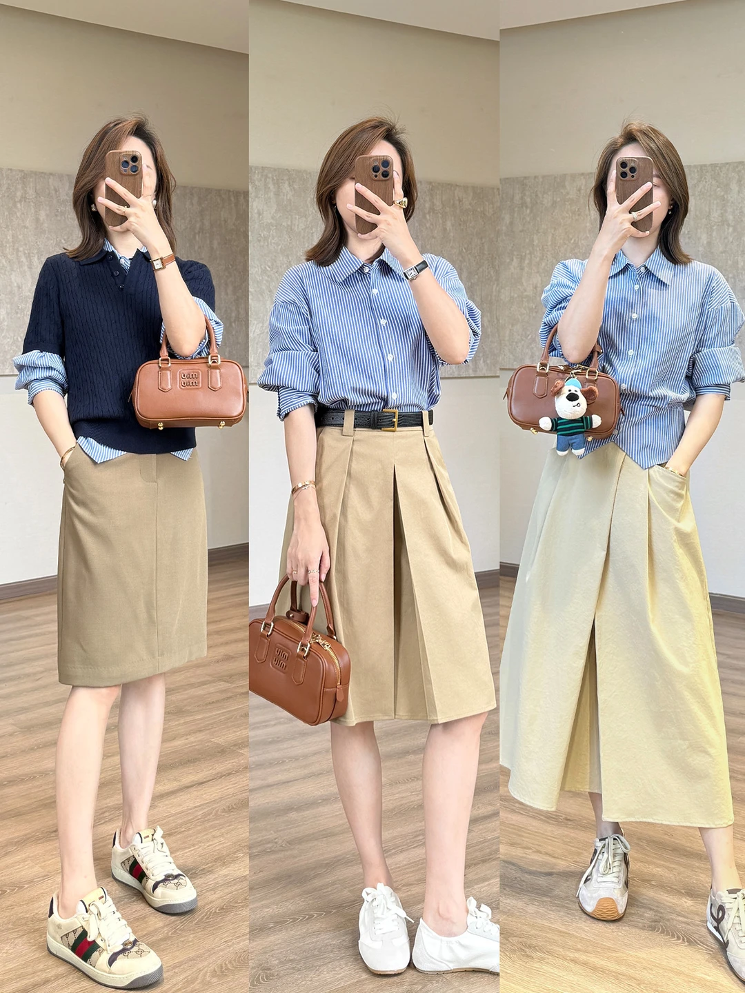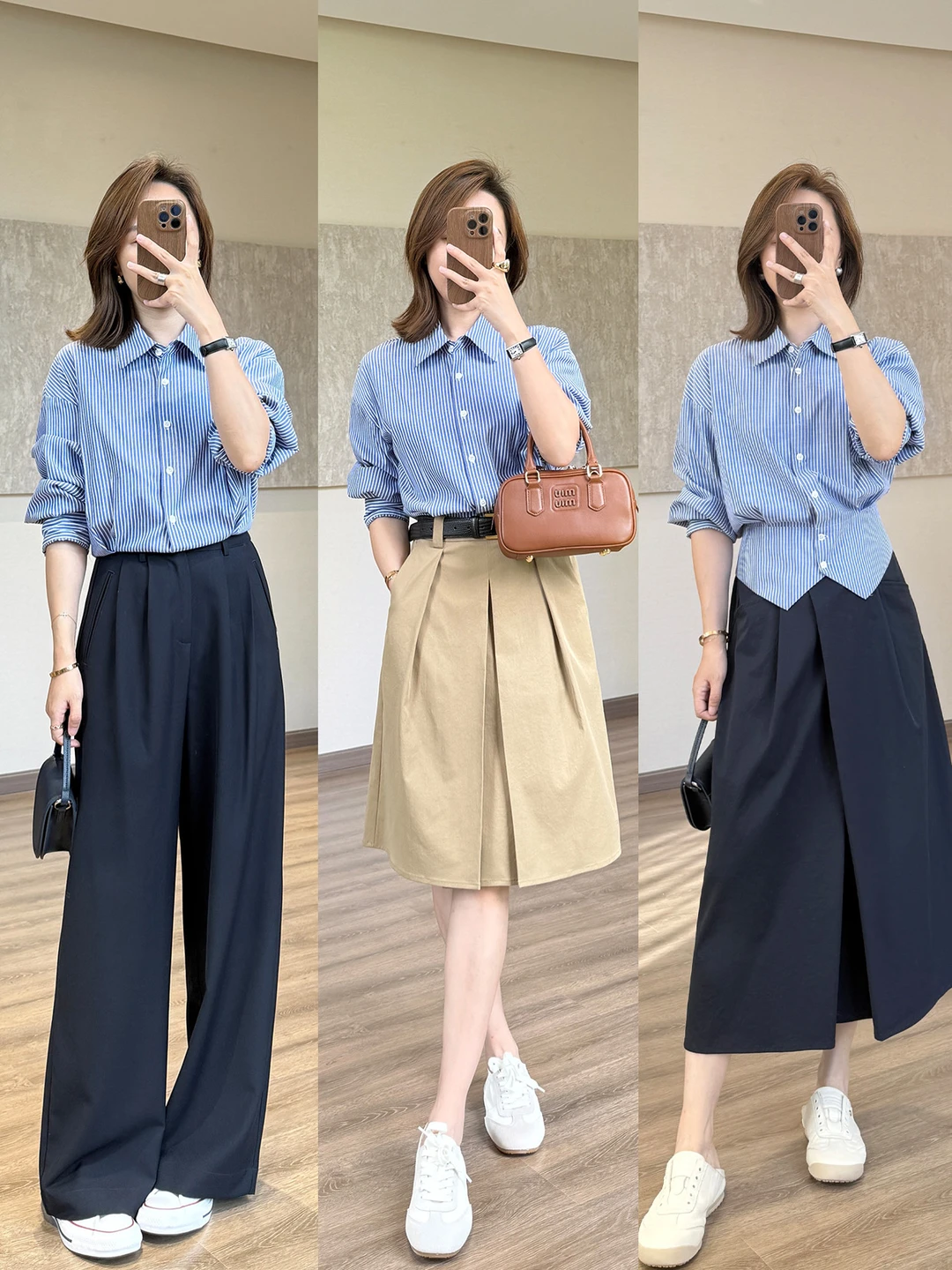 姐妹闭眼冲超气质 把“显瘦”两个字焊在身上 蓝色衬衫与半裙的搭配 恰到好处 高级又时髦~ 158小个子穿搭 梨形身材穿搭 春夏穿搭 蓝色条纹衬衫 半身裙穿搭 气质穿搭 时髦穿搭 显瘦穿搭 不费力穿搭