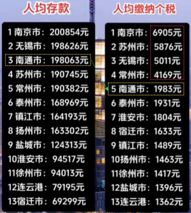 人均挣钱,南通前三!人均缴纳,南通第五?苏南遥遥领先…… 这是一组非常有意思的