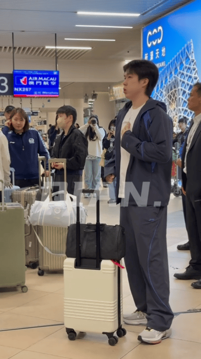这个距离适合大家拍了,哥姐同框等待, 头哥从站在这里开始,就很忙, 一直没停下来,各种的动作不间断。 国乒下午在成都出发,现在到达澳门,准备世界杯的比赛, 到达等待出关的时候, 拍到了哥姐的同框, 今天很熟悉,距离小于5米。 比赛加油哦,一切顺利莎莎楚钦。