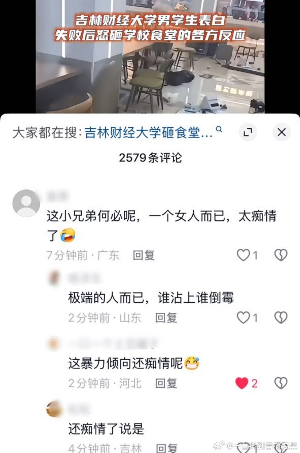 男生表白失败怒砸学校食堂被夸太痴情 。。演的还是?