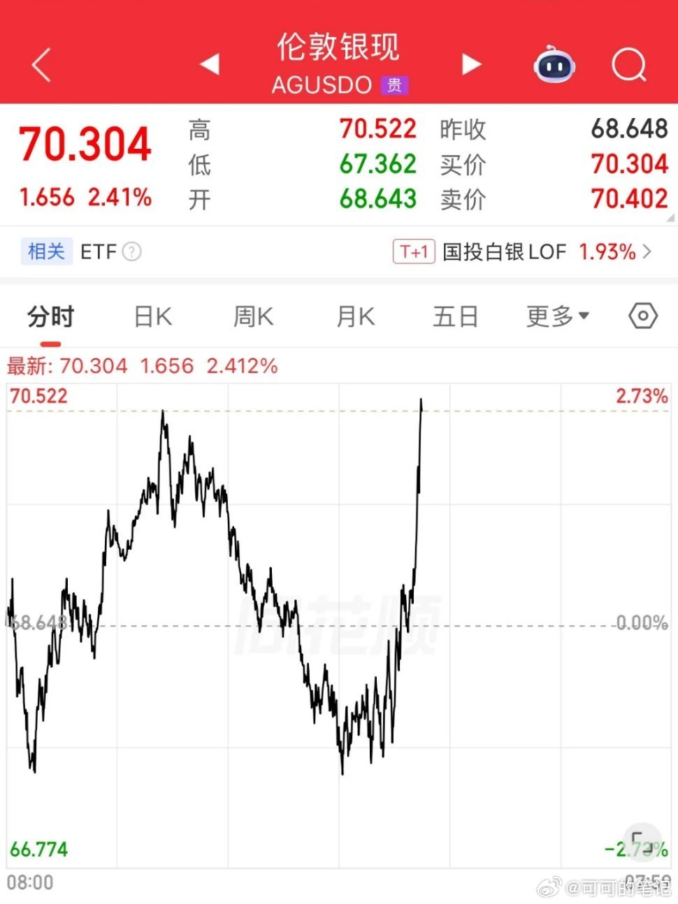 发生什么!外围消息还是来点快啊!现货黄金爆拉100美元,重回4500美元/盎司,大涨2.3%,现货白银猛拉直接翻红并大涨超2%,重回70美元/盎司,但唯一不变是布伦特原油期货依然还是稳稳当当站在110美元/桶上面,这出什么事情了,一下把黄金、白银暴力拉升起来,一起一会看看到底什么因素改变了这个。黄金为何上蹿下跳