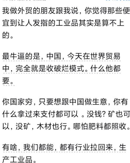 工业克苏鲁什么意思? 中国人民的生活水平,已经发展到忘记了空调是一件奢侈品的地步。 如果你觉得我在开玩笑,可以去油管上看看,一些老外来到中国,惊讶于一些看起来挺破旧的小区,竟然也装有空调。 说白了,我们中国人现在的日子过得太“习以为常”,常到把一堆别人羡慕到哭的便利,都当成了理所当然,连工业克苏鲁这种听着就玄乎的词,都远不如楼下的空调、收废品的大爷来得实在。 先说说最直观的空调,现在不管是城里的新小区,还是看着有点年头、墙皮都掉了点的老小区,家家户户窗户上基本都挂着空调外机,夏天制冷、冬天制热,没人觉得这是什么稀罕东西。 但我敢说,很多中国人都忘了,空调曾经也是实打实的奢侈品,而现在,我们已经奢侈到忘了它是奢侈品的地步。 如果你觉得我吹牛皮,去油管上翻一翻就知道,不少老外第一次来中国,逛到那些看起来挺破旧的老小区,看到家家户户都装着空调,眼睛都看直了,拍视频感慨“中国普通人的生活也太舒服了”。 甚至有人专门蹲在小区楼下,拍那些密密麻麻的空调外机,说这是“中国独有的风景”。 我还刷到过一个阿拉伯博主,说他在中国住了半年,最离不开的就是空调,还特意拍视频夸中国空调又智能又好用,噪声小还省电,回国后都不习惯了。 比空调更不起眼,但更能体现差距的,是废品回收。 就是每个小区里,要么有固定的回收点,要么有骑着三轮车喊“收破烂嘞”的大爷,纸壳、塑料瓶、旧家电,只要你攒着,随时能换成零花钱。 但我之前去外蒙古的时候,彻底开了眼,那里根本没有这种基础的回收产业,居民楼下经常堆着一堆堆废旧纸壳、塑料瓶,放得久了落满灰尘,也没人管、没人收。 不是当地人不爱干净,是真的没有形成完整的回收链条,没人来收,也没人知道这些废品能再利用,最后只能就这么堆着,对比我们中国,这种不起眼的便利,其实藏着很多人没意识到的产业底气。 据说我们国家现在的资源循环利用产业年产值都快到5万亿元了,这背后就是无数个小区里的回收点撑起来的。 要说变化最大的,我觉得还是手机,这种感觉比空调和废品回收更强烈。 2001年,我至今还记得自己买的第一个手机,是科健3600,当时花了我大半个月的工资,拿到手的时候宝贝得不行,小心翼翼揣在兜里,生怕磕着碰着,连铃声都要设置成最特别的,跟人打电话都得特意提高音量,生怕别人没听见。 可现在呢,买手机就跟买件普通日用品似的,走进手机店,各种品牌、各种型号看得人眼花缭乱,我每次买完手机,不出一个月就记不清具体型号了,坏了或者想换了,随手就能换一部,根本不用纠结半天。 而且现在旧手机也不用浪费,家门口的回收点就能收,据说一吨旧手机能提取出不少黄金,既环保又不浪费,这在很多国家,都是做不到的。 其实不只是空调、废品回收和手机,我们普通人的幸福,就藏在这些触手可及的日常里,工业品就不用说了,据说美国人家用的烤面包机,99%以上都是中国制造。 电子产品更不用说,现在中国的扫地机器人在韩国市场的份额都超过50%;还有蔬菜、水果、肉类,不管是什么季节,超市里都摆得满满当当,不用愁买不到,也不用花大价钱。 当然了,有钱人的生活咱比不了,但至少目前来说,生活在中国的普通人,真的很幸福,这种幸福不是什么宏大的口号,就是夏天能随时吹上空调,废品能随手卖掉,手机能随时换新,想吃的东西随时能买到。 以上全是我个人看法,没有任何评价的意思,就是单纯分享自己的感受和看到的现象。不知道你们有没有这种感觉,或者你们身边有哪些习以为常,却被老外羡慕的日常?欢迎在评论区聊一聊。