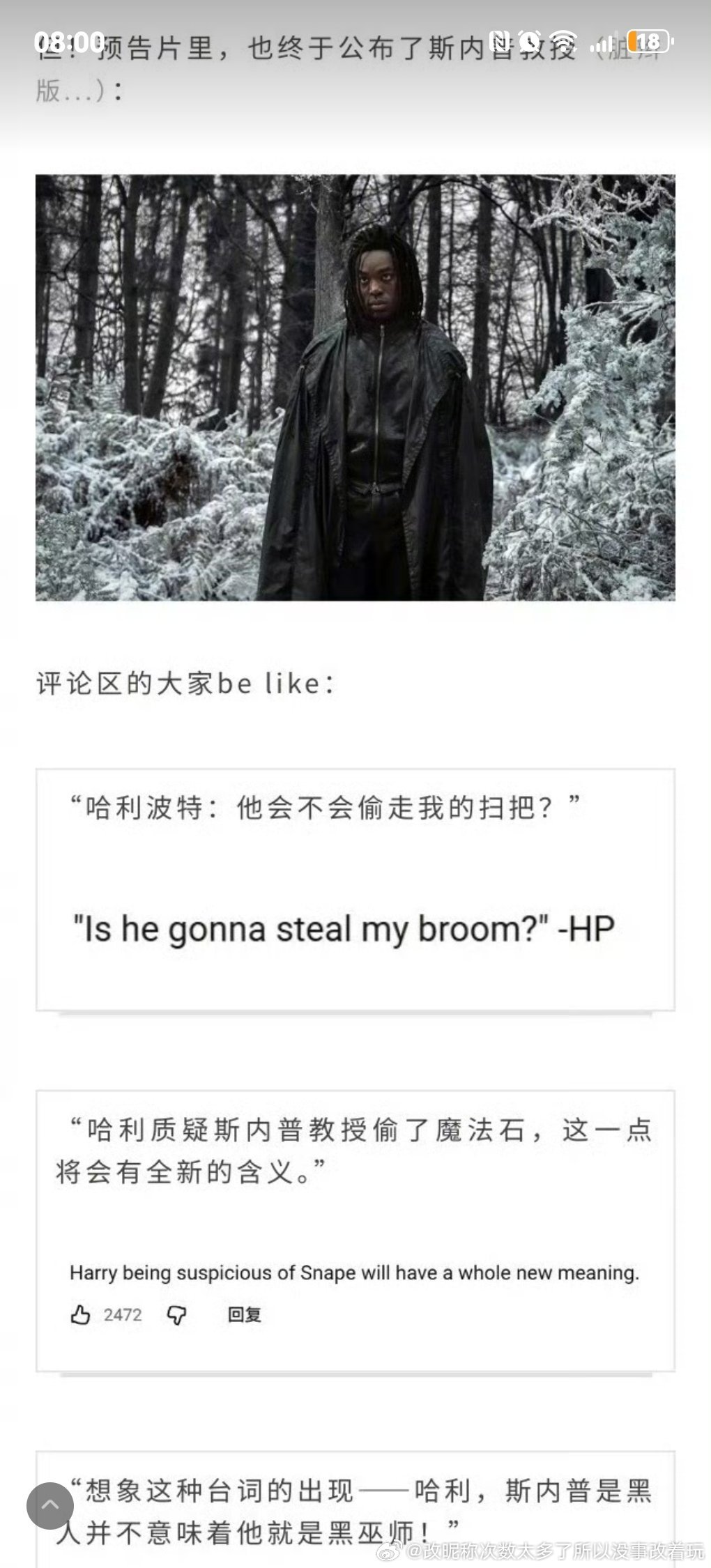 剧版应该是斯内普黑子and高级黑黑人群体在发力吧不然真的很难解释为啥就斯内普这么离谱,要加黑人甚至四人组的🐭这些很好加