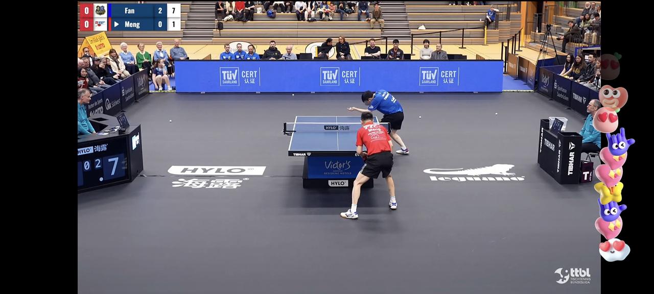 萨尔布吕肯主场迎战富尔达,富尔达主教练孟庆宇也亲自上场与樊振东过招,感受大师课魅力[呲牙]。 73年的孟庆宇颗粒打法,一个传统直板打法,一个现今乒坛最高水平选手,新老两种打法的碰撞,第一局樊振东明显是不太适应,双方双吃发球,樊振东10:4领先时连丢6分,10:10,关键时刻樊振东连得两分,12:10拿下,虚惊一场。 整场比赛耗时19分钟,樊振东3:0光速下班,评论区不少球迷留言,希望看到53岁还在打球的樊振东,这何尝不是大家的心愿呢!