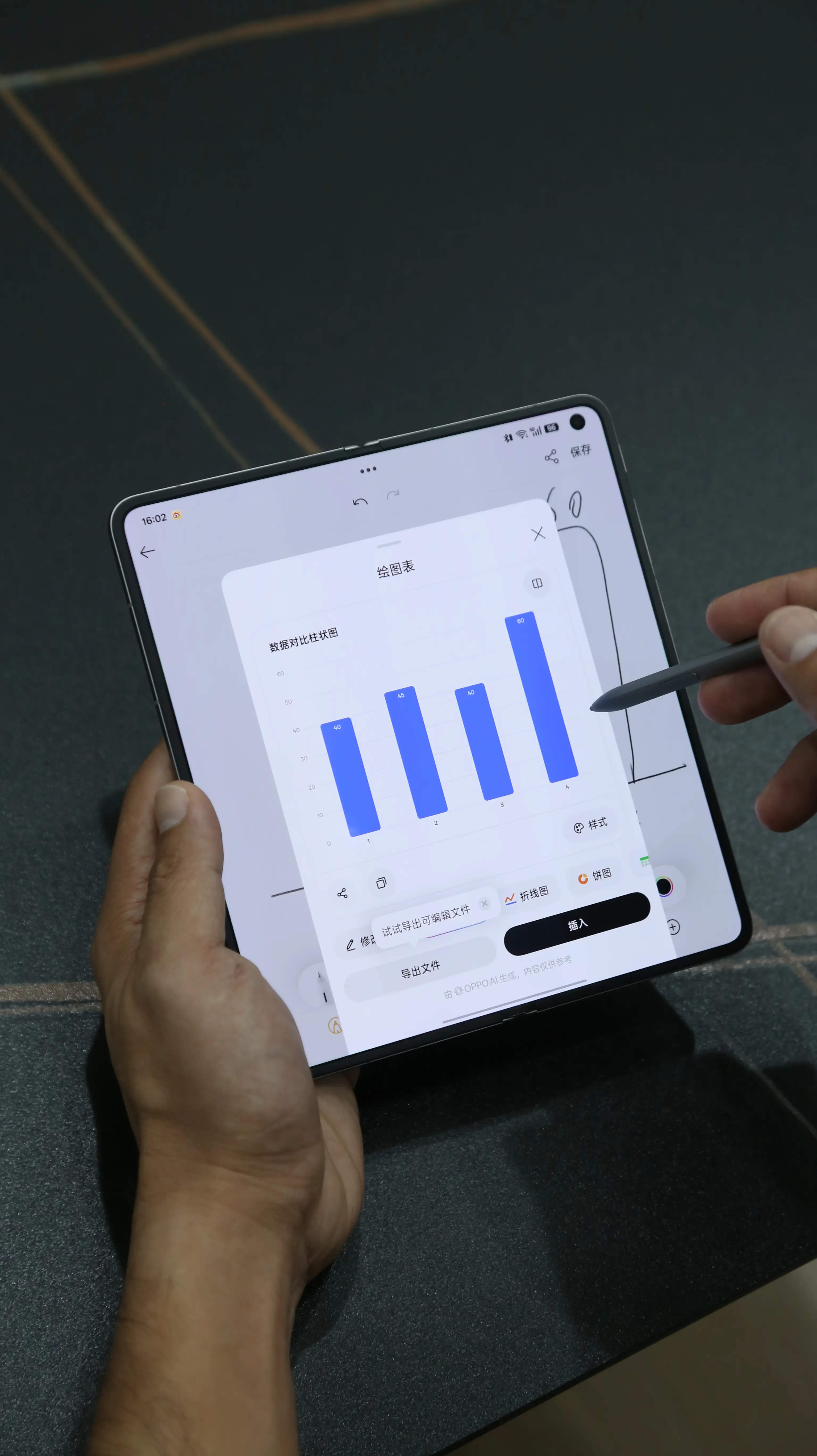 不过重头戏还有那支新增的AI手写笔。它可以搭配Find N6,通过“一圈一点”实现把草稿图变为精美图表、把线稿转化为唯美插画。就算字写得丑也不怕,写完还能自动给你美化变工整,真的爱了!😍