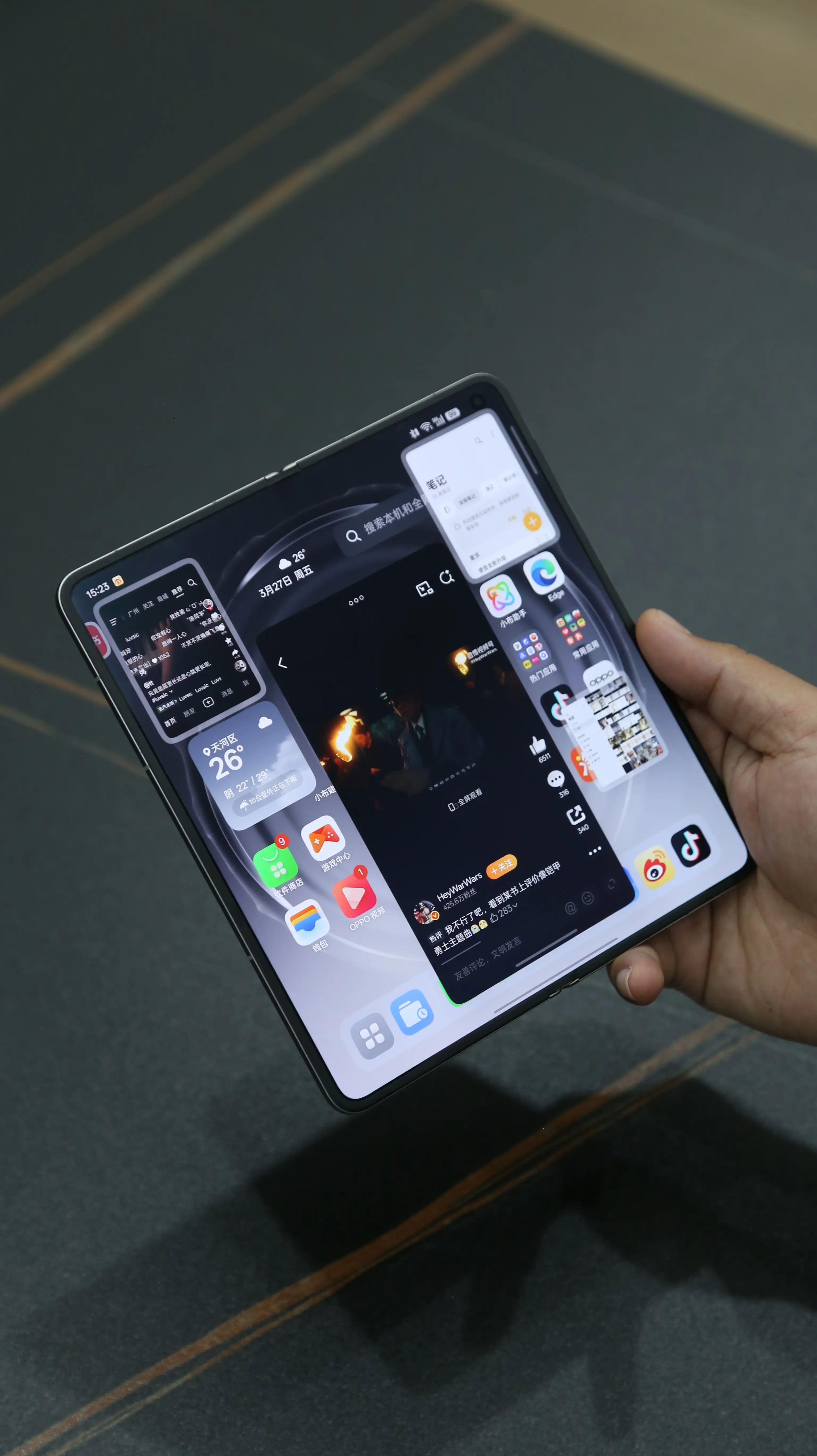 先说最让我震惊的——折痕真的没了!以前用折叠屏,手指划过中间那道沟,心里总有点膈应。但这台,无论正看、侧看,还是打着光看,都几乎看不出折痕的存在。