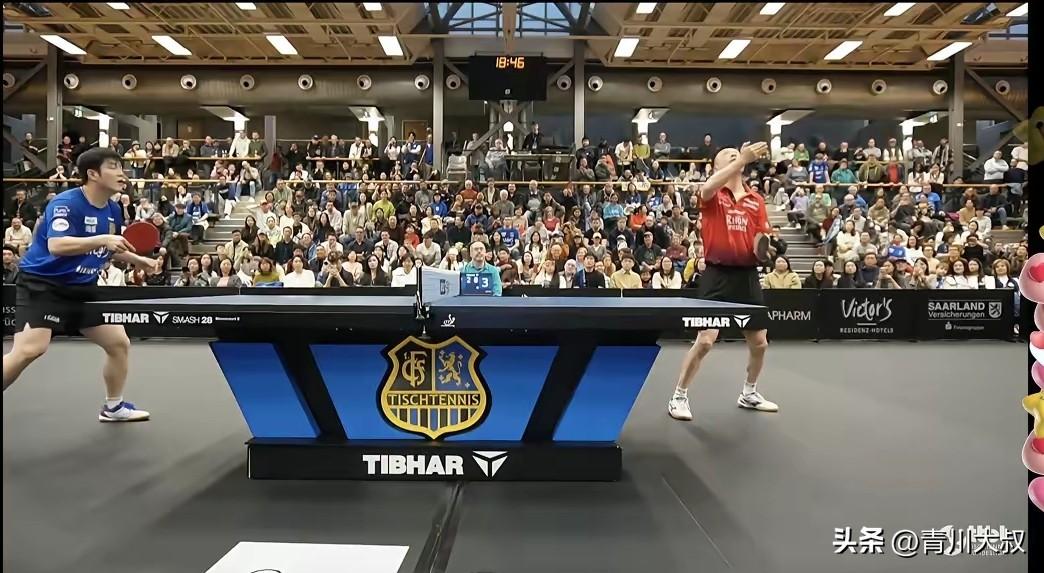 泪目!今天樊振东打完比赛后,独自转了720度,向现场观众挥手感谢! 今天萨尔布吕肯主场座无虚席, 大家也知道, 东哥的萨尔队比赛, 看一场少一场, 所以说, 大家与其说来看比赛, 更像是来道别! 虽然东哥拿下了2分, 但是由于世界杯, 达科和弗队都去打世界杯了, 替补出场的萨尔布吕肯还是2:3输了! 不过现场球迷似乎不在乎输赢, 照样给了他们热烈的掌声!