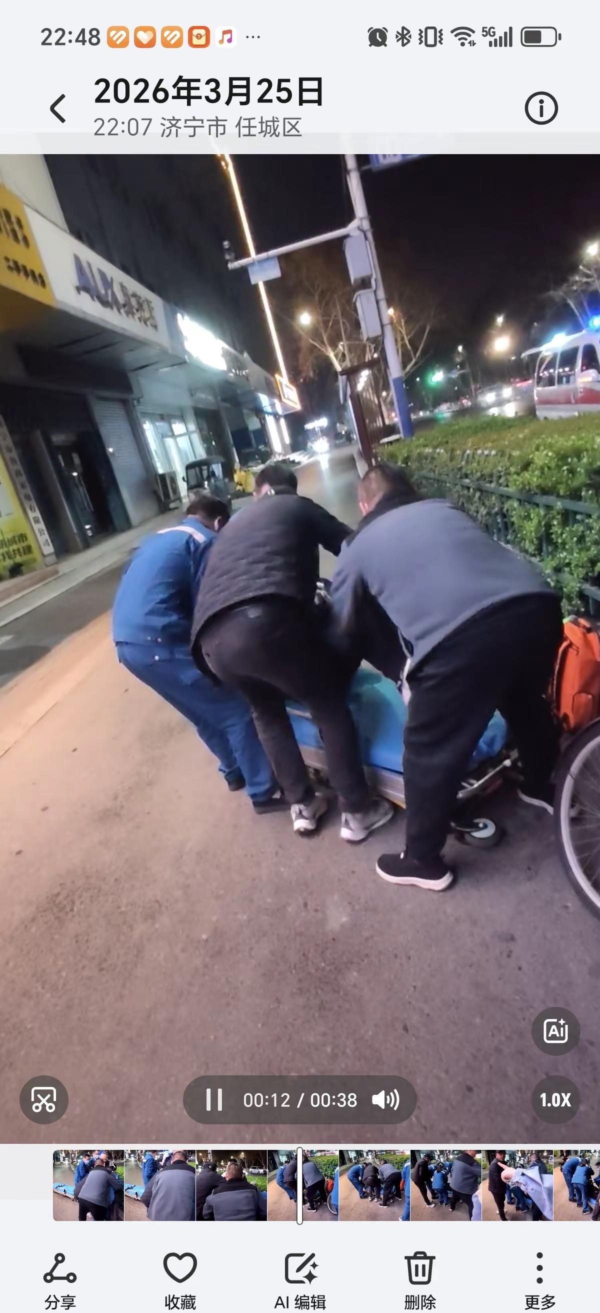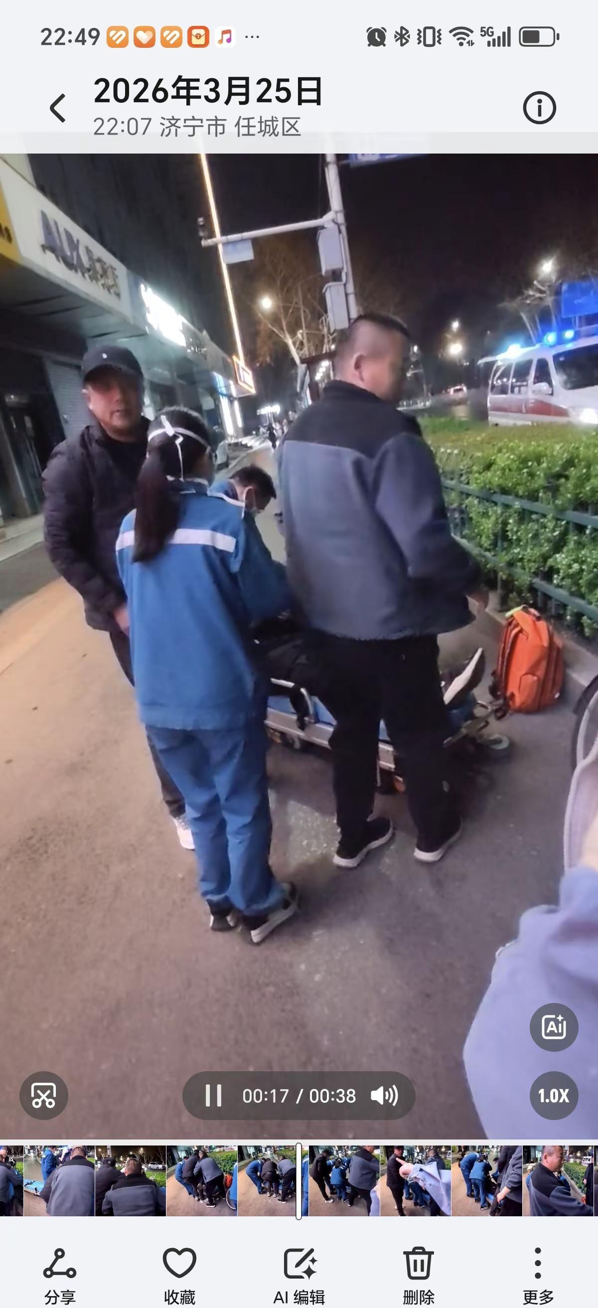 下班途中。下班刚才在下班路上,遇到一个大叔晕倒在路边花丛上,我和一位不认识的美女路过,过去十米后,我停下了,她也停下了,我们一起走向大叔,但是没敢靠近,正好又对面来了两位不认识的好心大哥,他们让我拍视频为证,跟大爷沟通,同时在唐乐上班的美女打了120,感谢及时赶来的济宁医学院附属医院的医护人员,为两位来济宁出差的菏泽大哥点赞👍👍👍👍,为唐乐的小美女👍👍👍👍只要人人都献出一点爱,世界将变成美好的人间。@济宁_新闻