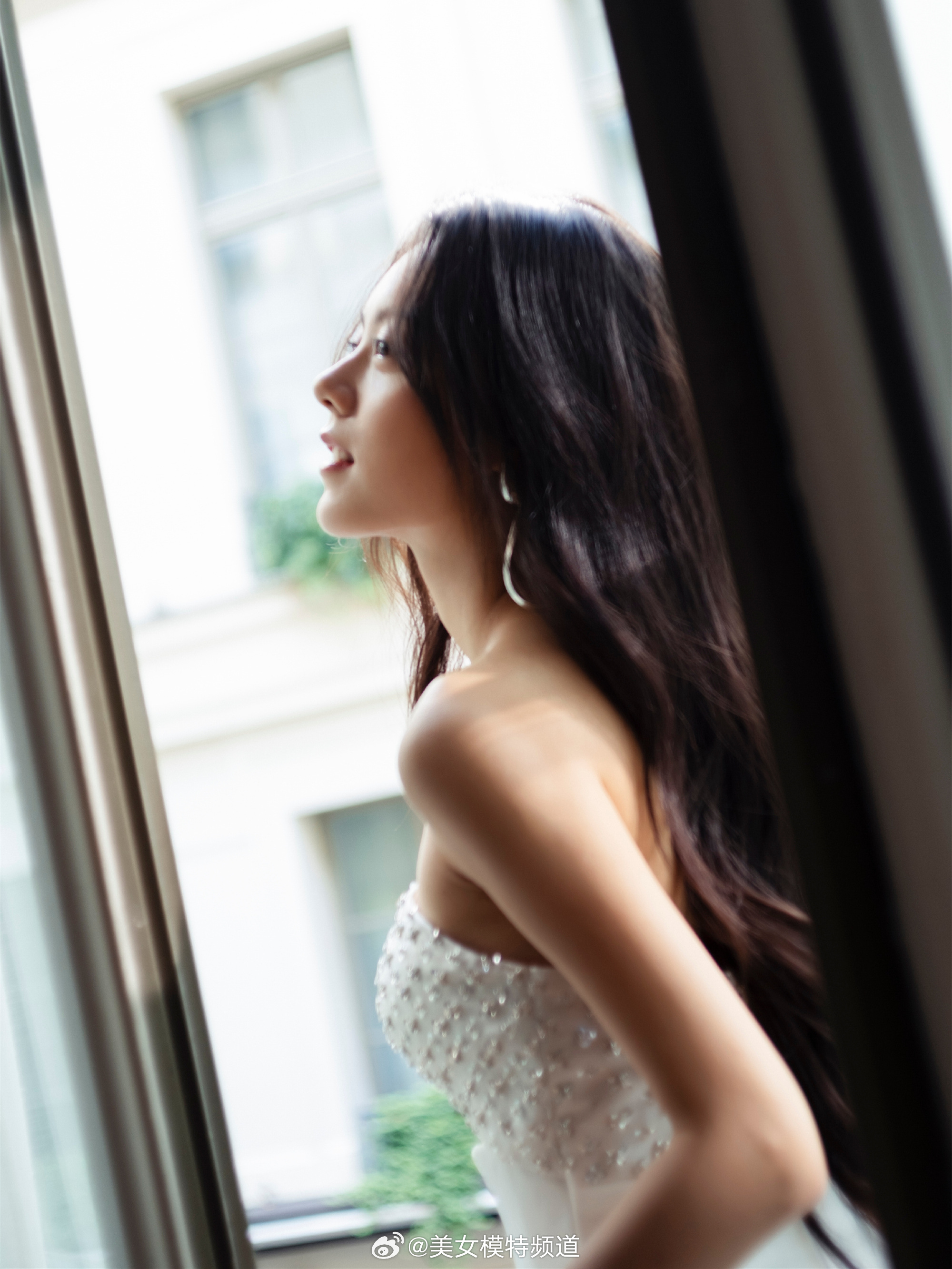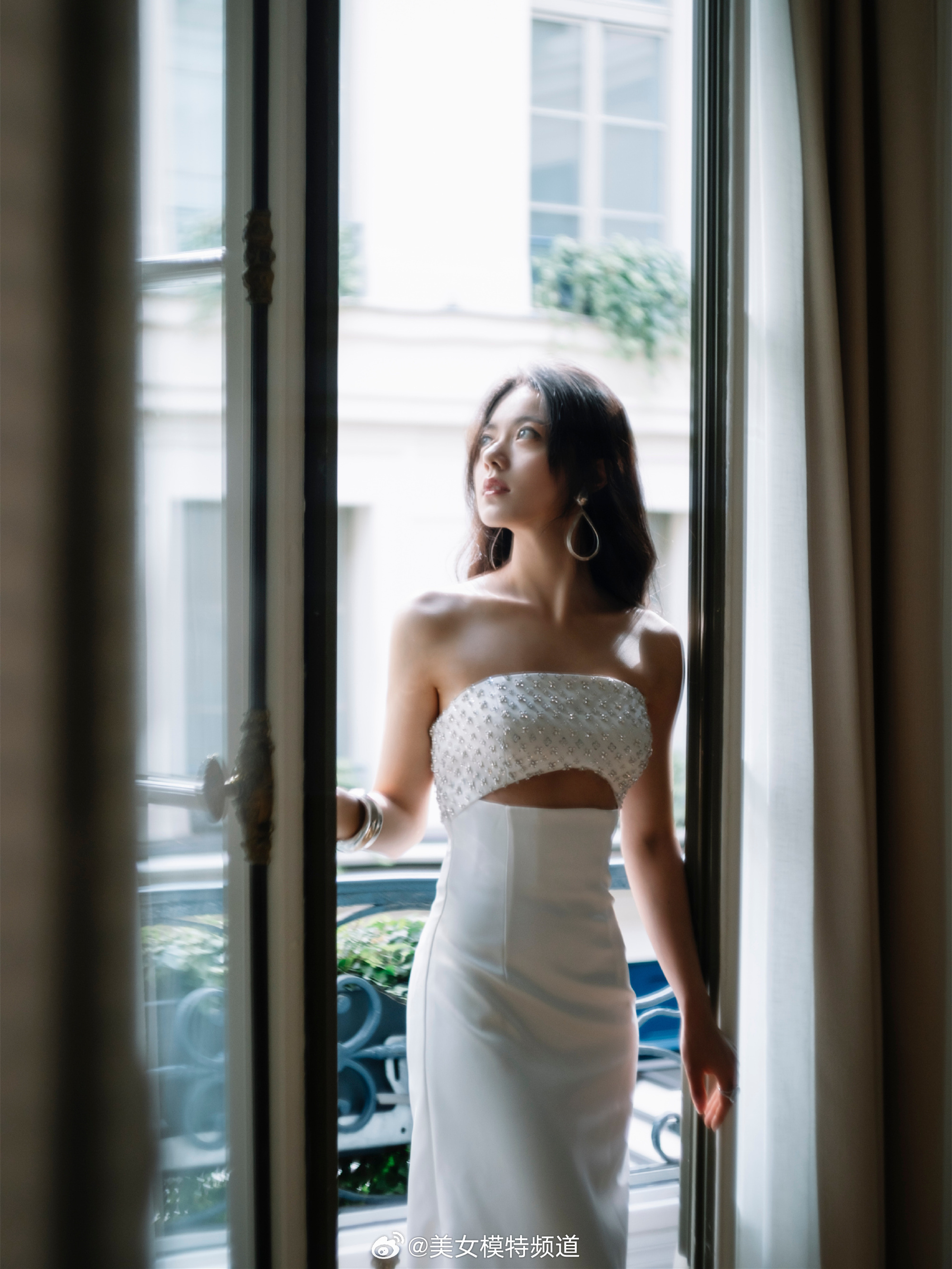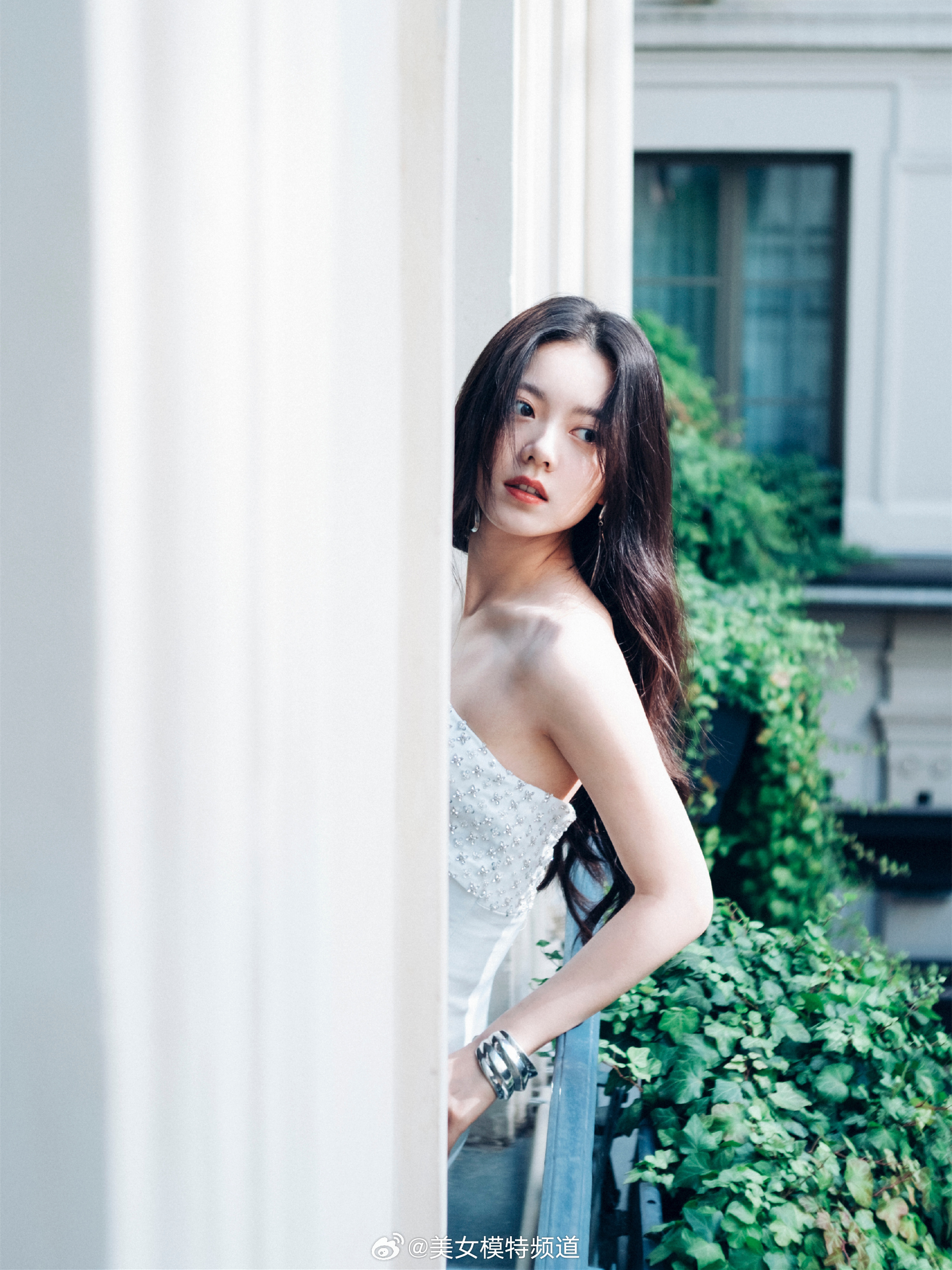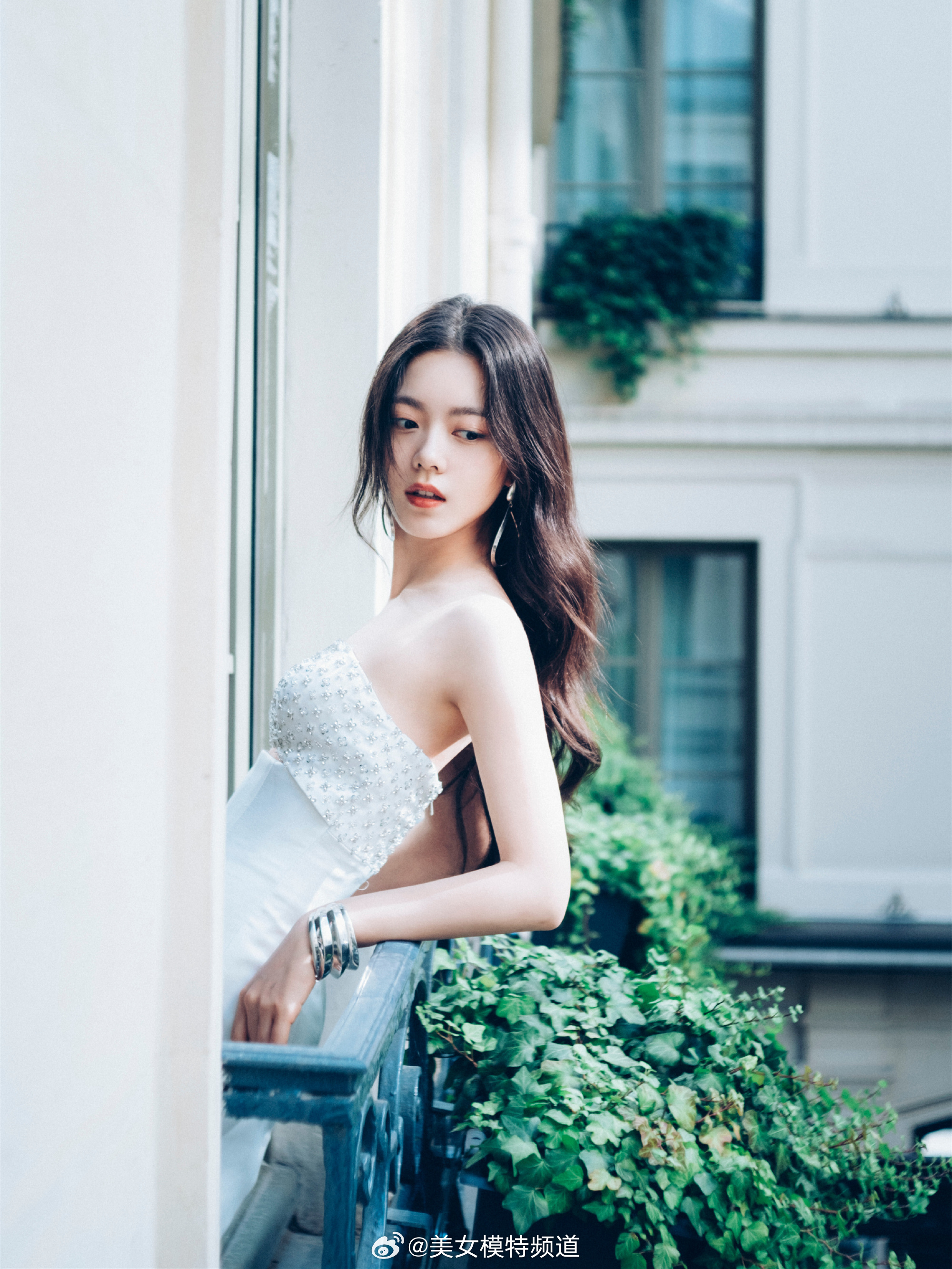 赵今麦白色吊带抹胸长裙造型