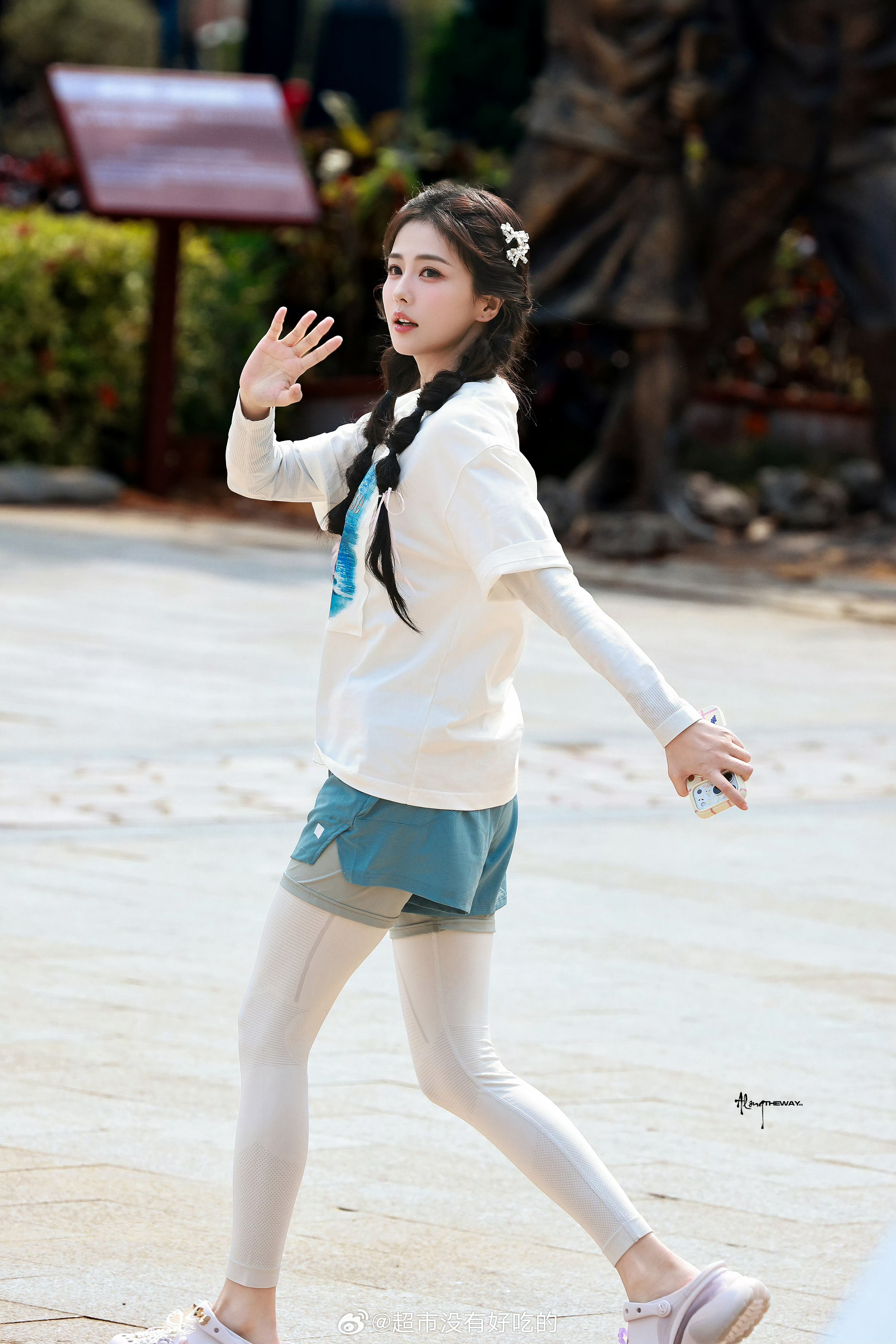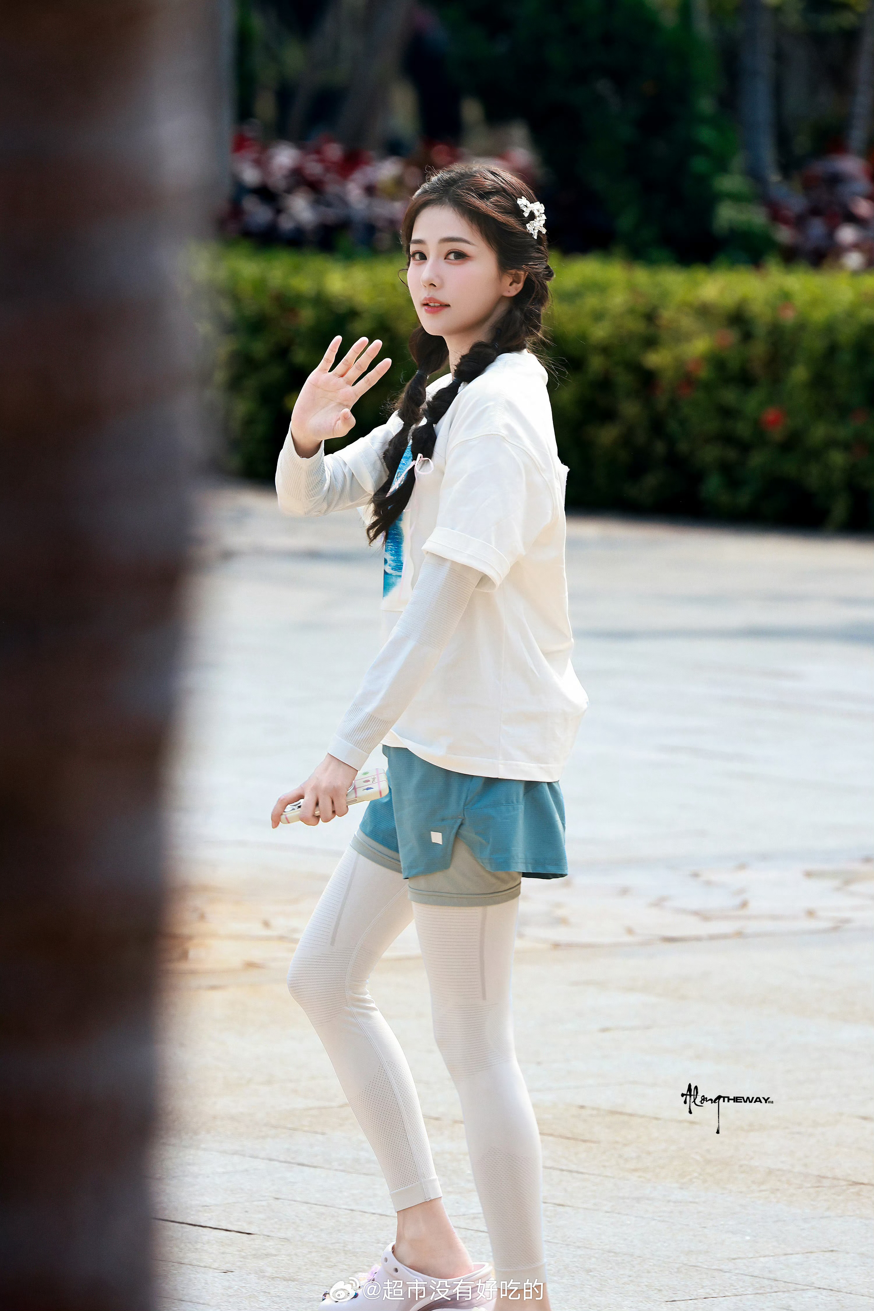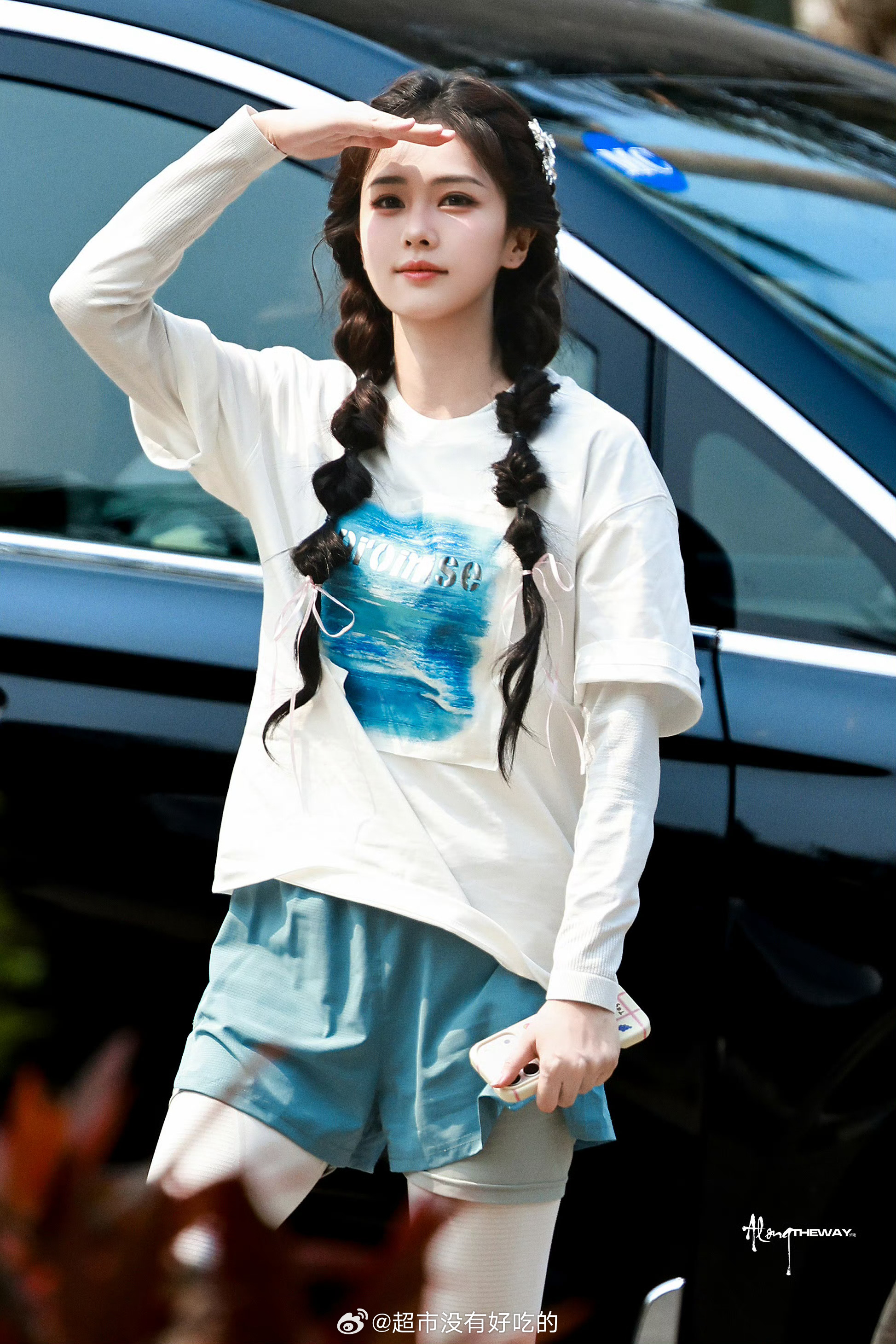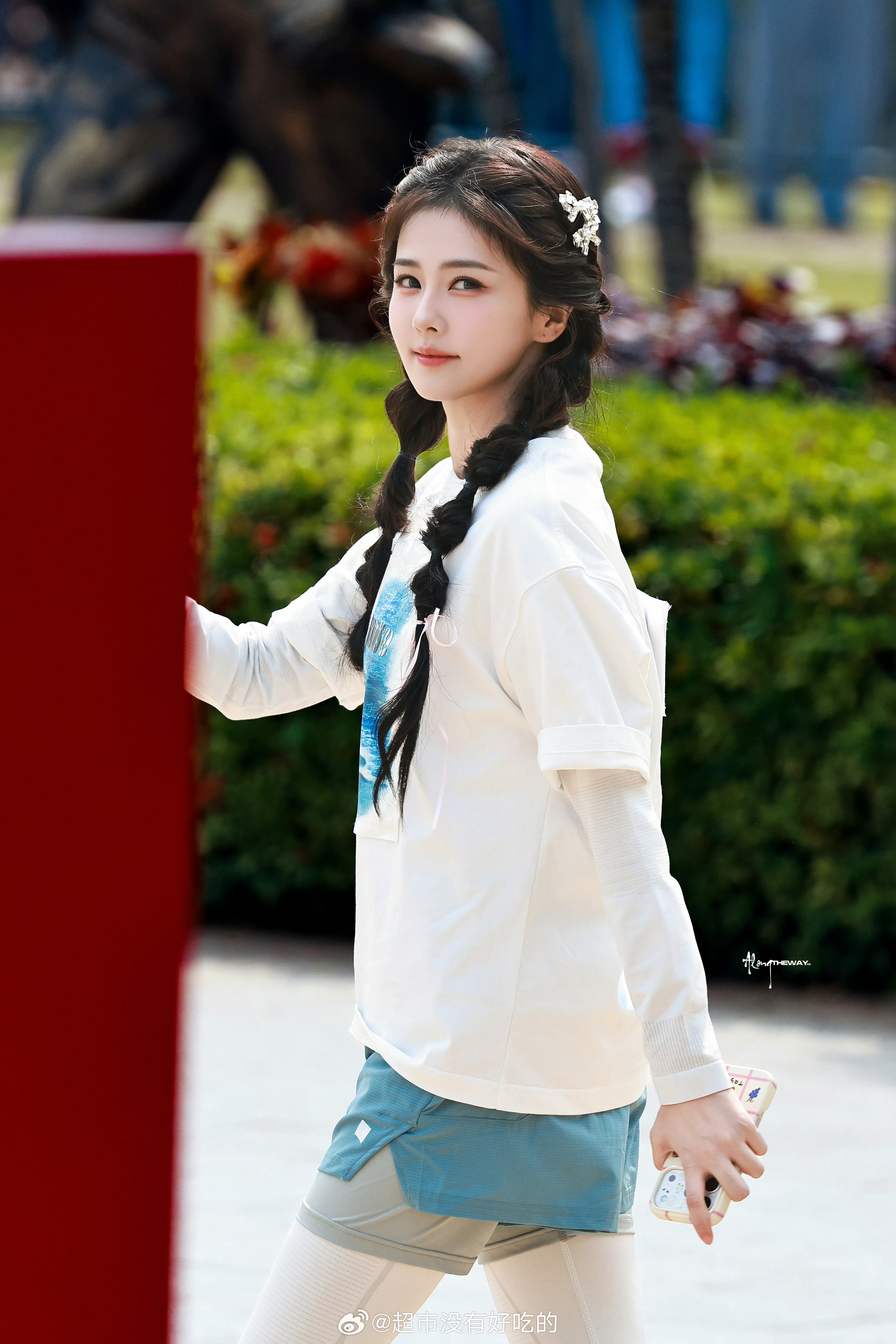 白鹿奔跑吧上班路透双马尾活力满满的女大好元气的菠萝,玩的开心,期待节目播出白鹿白
