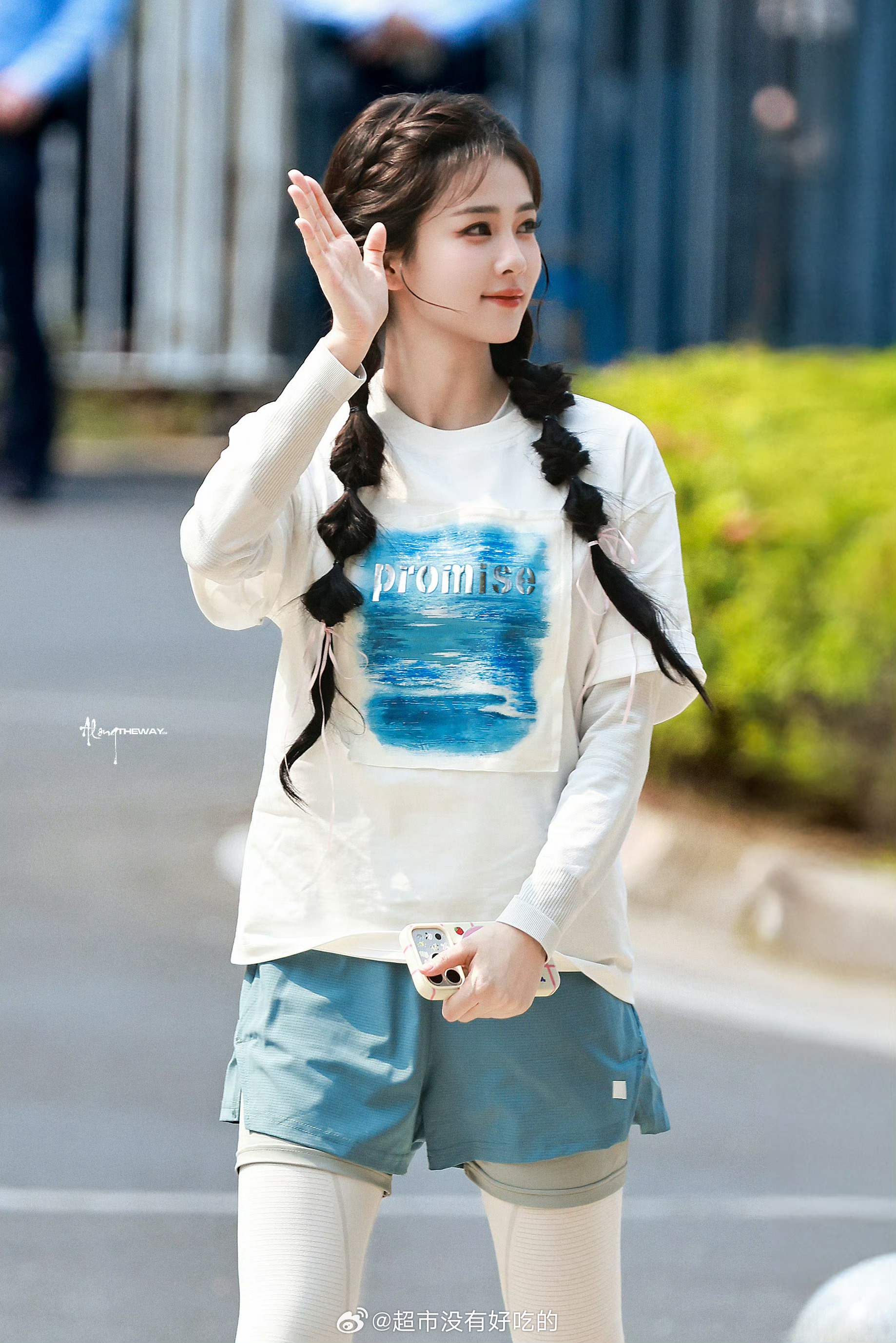 白鹿奔跑吧上班路透双马尾活力满满的女大好元气的菠萝,玩的开心,期待节目播出白鹿白鹿