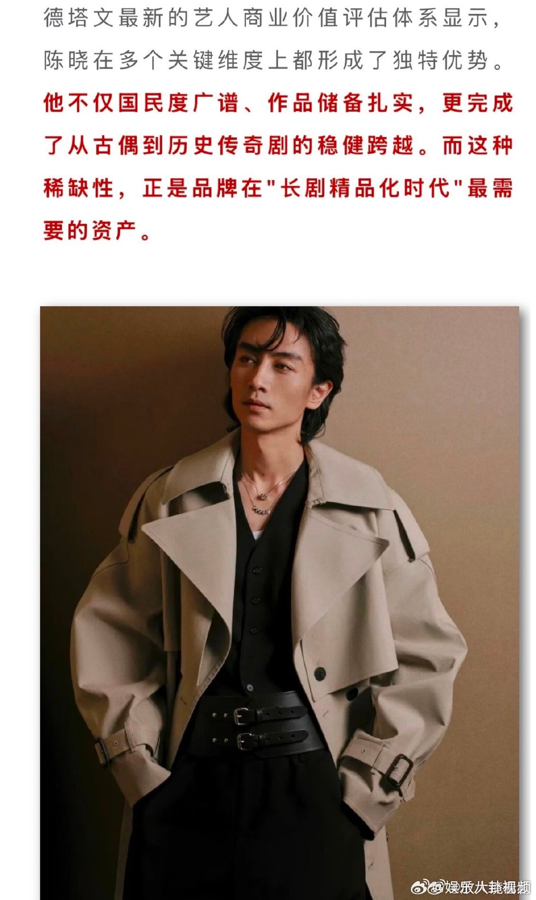 陈晓选本这块战绩可查陈晓样样顶专注拍戏,远离喧嚣,陈晓用作品说话!选本精准、角色多样,扛剧能力超强,待播新剧必将再续精彩。
