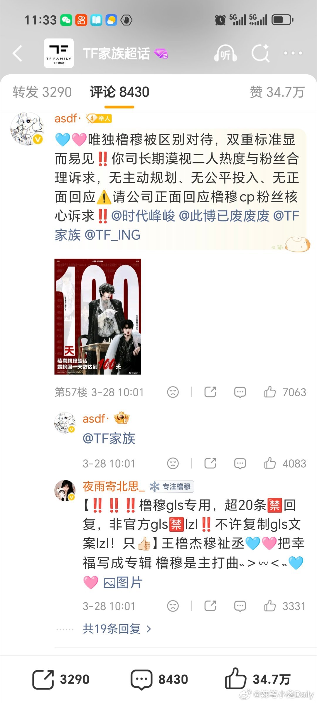 TF家族官博前排全部都被橹穆批占领了,楼内顶流实至名归!😤(其实出楼也是天下无