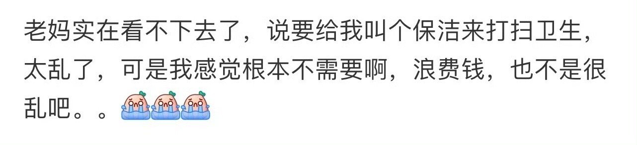 老妈实在看不下去了,说要给我叫个保洁来打扫卫生