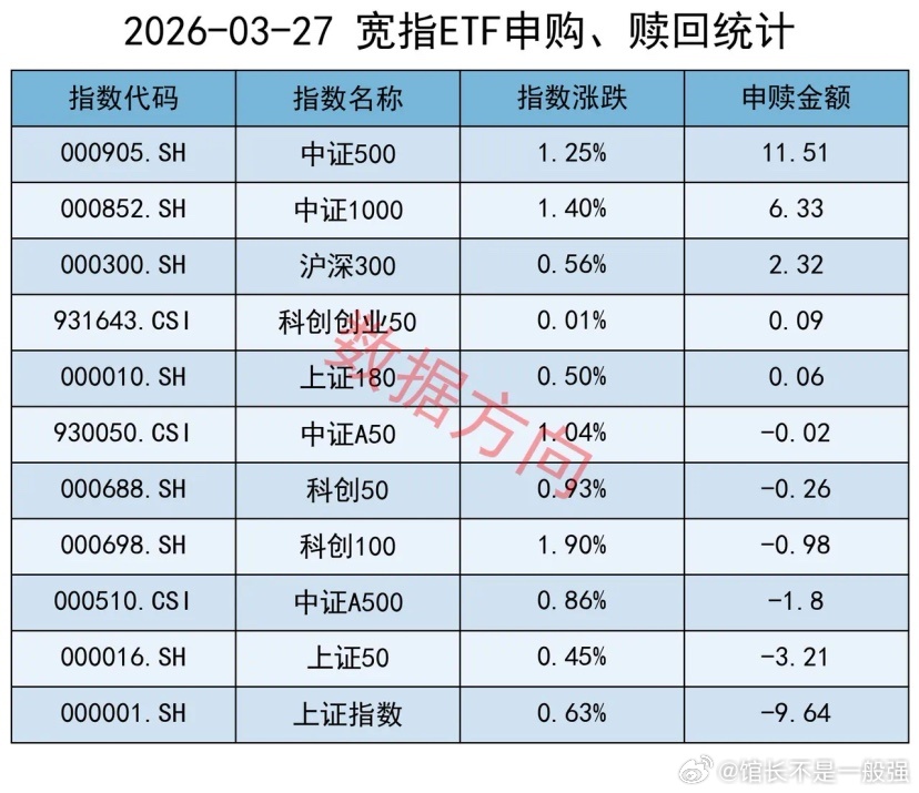 中证500指数(11.51亿)、中证1000指数(6.33亿),净申购居前。