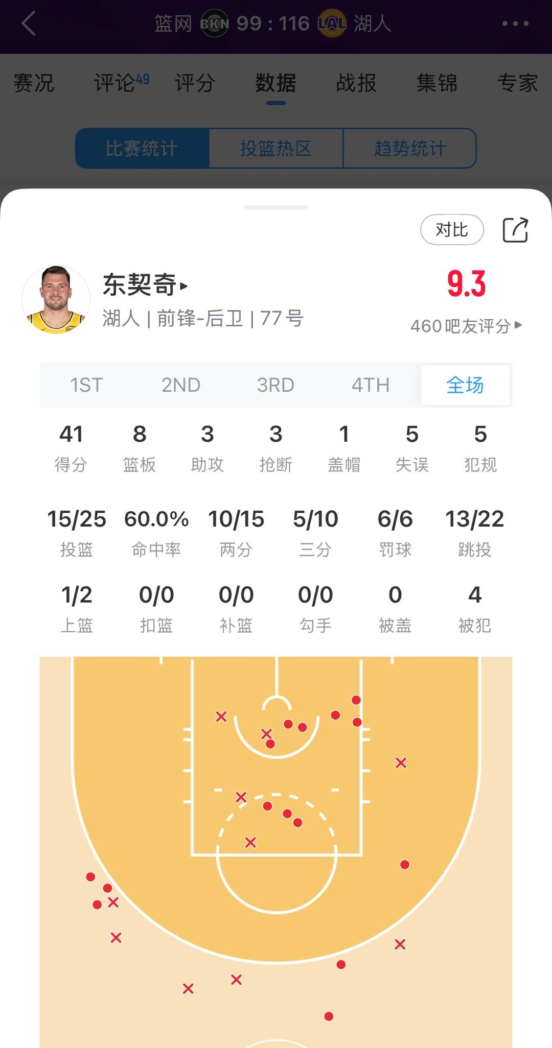 基本盘!东契奇41分8篮板,本赛季第15次40+,联盟断档第一篮网vs湖人