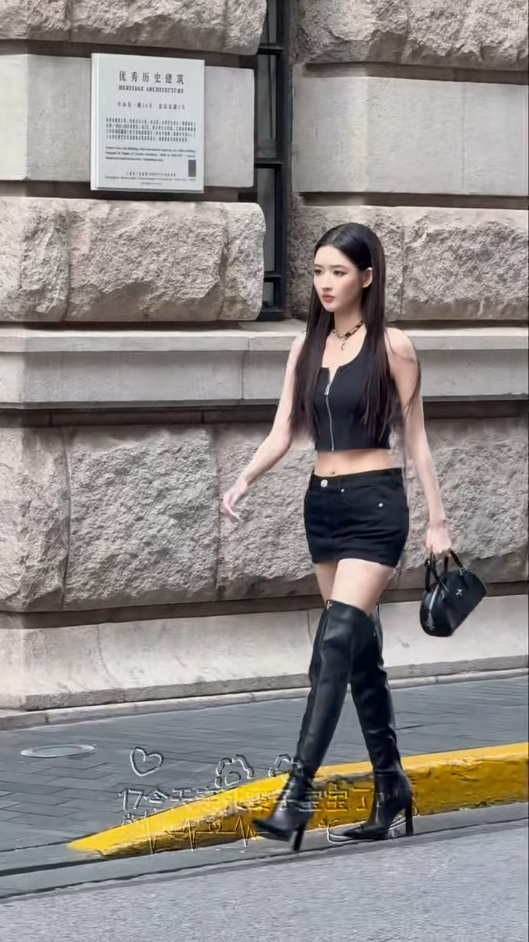 王玉雯这身材小细腰大长腿,真的不是在走t台吗,黑长直冷都女