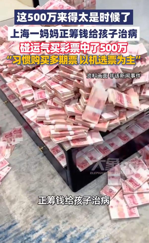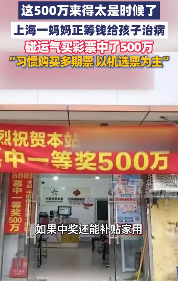 彩票成了救命稻草?上海,一位妈妈筹钱给孩子看病,正发愁的时候,就顺手买了张彩票,没成想,这张彩票竟然中了500万大奖,简直就是雪中送炭,不过很多网友却觉得不合适 说出来很多人可能不信,这位妈妈说自己买彩票的时间不长,也不太懂什么走势、技巧,纯粹就是图个念想。平日里照顾孩子忙得脚不沾地,也没工夫研究,图省事,就习惯买个多期的机选票 她自己也说,就是想着试试运气,万一呢,多少能补贴点家用,结果这个万一,真来了——500万 这笔钱解了燃眉之急,孩子的后续治疗一下子有了着落。她松了一大口气 可消息传开之后,网上的声音却没那么统一 有网友说:负债的、伤病的、周转不开的人,已经这么难了,怎么还去买彩票呢?这次是中了,要是不中呢? 我们站在这头看,当然可以冷静地说,彩票这个东西,概率摆在那,中奖是小概率事件,不该把希望寄托在这上头。可站在她那头想,当一个人已经试过了所有常规的办法,亲戚借遍了,积蓄花光了,医保报销完还是差一大截,她能怎么办? 这时候有人告诉她,彩票不靠谱,别买了。道理她不懂吗?她懂。但她需要的不是道理,是一个出口 几块钱一张彩票,买的不只是一个号码,是那个晚上能睡着觉的一点点盼头。人在最难的时候,总得信点什么,哪怕信的是一串随机数字。 对此,你怎么看呢?