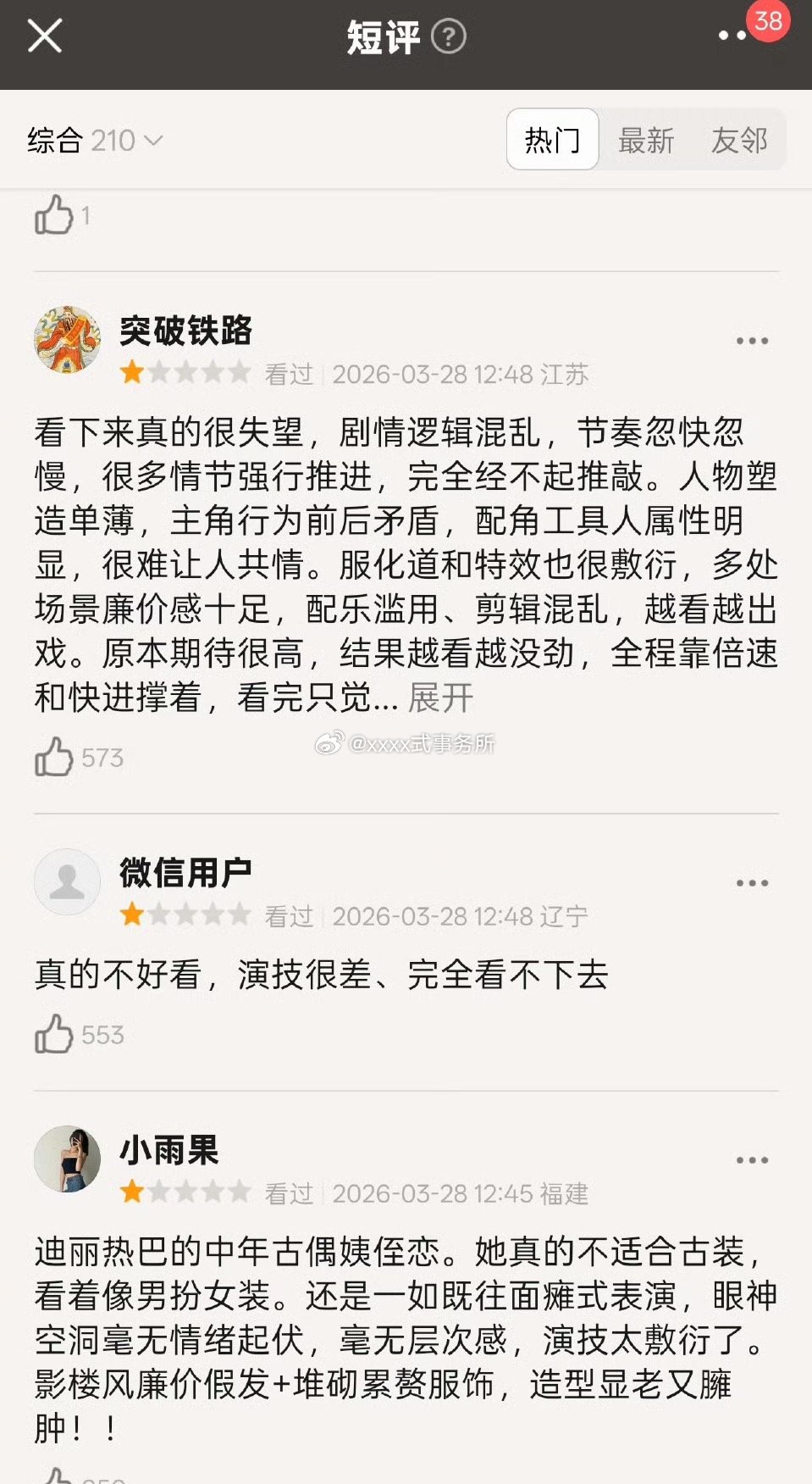 迪丽热巴白日提灯开播一小时豆瓣评分已被团建诸多一星