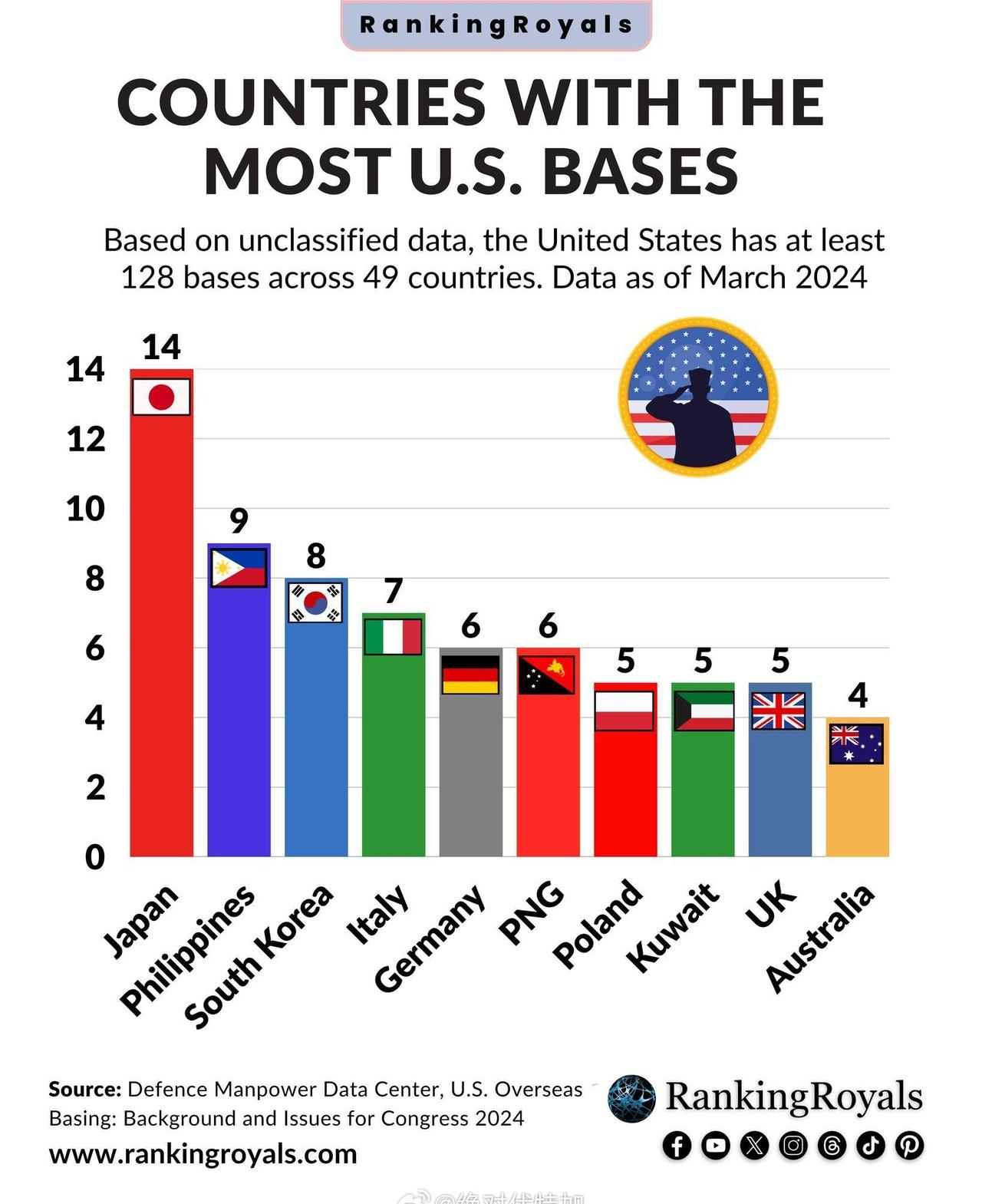 虽然在键政这一块,乳法是传统,但看了这个,你必须尊敬法国。 看看这些经济强国,无一不有美军基地, 但是,法国居然没有一个也没有。 他们真的是在玩独立自主啊。 当然,这也是有代价的,比如阿尔斯通的故事。 看来,法国人在美国人面前还是很骄傲的,哪怕他们在德国人面前举起了双手,哪怕他们是在美国人的帮助下才能复国,但,这还是不能改变他们对自己是一个法国人的骄傲。 顺便说一句,法国是欧洲唯一不受美国控制的国家。 俄罗斯我们认为他们是欧洲国家,但老欧洲认为他们是野蛮人。[笑哭] 点右上角关注我,我们一起去看这个魔幻的世界
