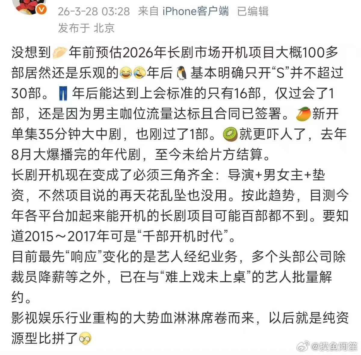 🍉主说真正的影视寒冬来了,但是影响不到头部艺人……所以说现在在娱乐圈能当上有姓