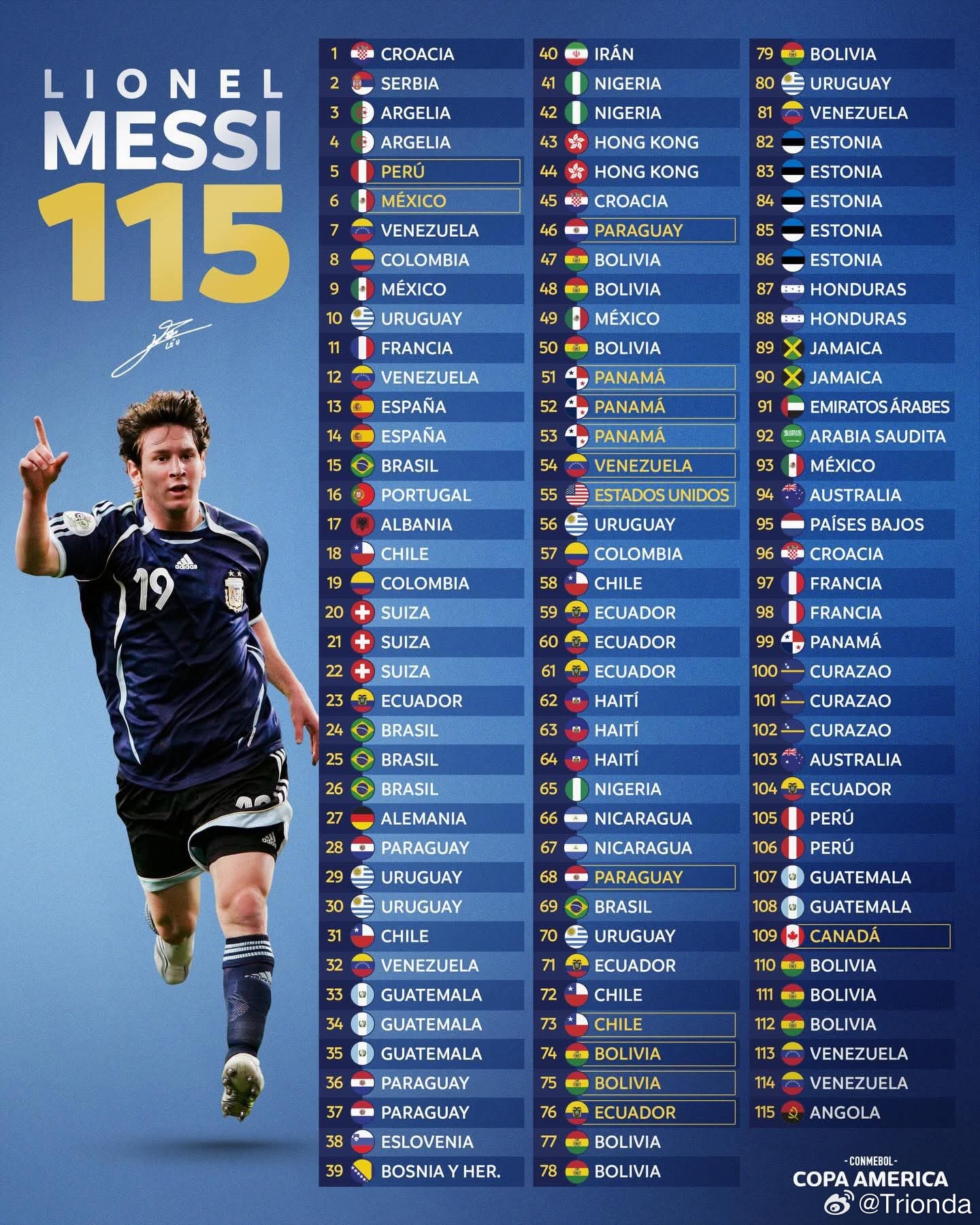 梅西在最后一届世界杯之前的最后17个国际比赛进球…… 💀想象一下,如果他的名字