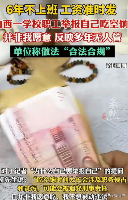 “大义灭己!”山西太原,一男子6年没上班,每月8415元工资却准时发,他怕被追究责任,一狠心举报自己吃6年空饷,原来,男子工作调动,但他发现《调动登记表》既没盖章,审批程序也不对,而且,他技术人员10级被写成了科员9级。男子上了1个月就坚决不上了,要求调回原单位,可没人搭理他。他反映了6年,没人查没人管。单位回应:做法合理合规。 柳先生原本在一所贸易学校做技术岗职工,日子虽不算大富大贵,但稳定、体面。直到2019年底,一纸“调动通知”打破了这种平静。 起初,柳先生并没有太当回事,以为只是正常的人事调整。 但当他拿到所谓的《调动登记表》时,心里却咯噔一下——表格上既没有单位公章,也没有完整的审批流程签字。 几处关键栏位甚至是手写补填的,更让他无法接受的是,他原本的“专业技术十级岗位”,竟被写成了“科员九级”。 这不仅是岗位名称的变化,更意味着身份性质的转换。技术岗与行政岗,晋升路径、待遇结构完全不同。 “这不是简单调动,这是变相降级。”柳先生当时就有了这个判断。 他还是去了中学报到。那一个月,他过得异常别扭。学校的工作内容与他原来的专业几乎没有关联,他被安排做一些零散的行政辅助工作,既用不上专业,也看不到发展空间。 更重要的是,他始终觉得,这次调动“来路不正”。 一个月后,柳先生做了一个决定:不干了。 但他并不是简单辞职,而是开始向原单位申请——要求调回贸易学校,理由是调动程序存在问题、岗位调整不合规。 他以为,这只是一个需要时间解决的沟通问题。 没想到,这一拖,就是六年。 最初,他不断写申请、找人事部门沟通,对方的答复却总是模棱两可:“已经调过去了”“再研究一下”“等上级批复”。后来,他去找中学,人家说:“你属于调入人员,我们只是接收单位。” 两个单位之间,像踢皮球一样,把他推来推去。 渐渐地,他不再去上班。 但奇怪的事情发生了——工资,照发不误。 每个月8415元,一分不少,准时打进他的账户。没有考勤,没有考核,也没有人找他谈话。就像他这个人,既存在,又不存在。 起初,他还有些忐忑,担心哪天突然被追责。可一年过去、两年过去,什么都没有发生。 他一边继续反映问题,一边过着一种“半失业”的生活。身边人听说后,有人羡慕:“这不是白拿工资吗?”也有人提醒他:“小心以后一起算账。” 柳先生自己心里,其实一直不安。 他不是没想过去上班,但一想到那张没有公章的调动表、那个被改写的岗位身份,他就觉得这件事必须有个说法。 六年里,他几乎跑遍了能反映问题的渠道:单位内部、上级主管部门、甚至信访渠道。他把材料一份份递上去,把问题一遍遍讲清楚。 可结果几乎一模一样——没有调查,没有处理,甚至连一个明确答复都没有。 “像石头丢进水里,连个水花都没有。”他后来对朋友说。 时间越久,他的焦虑反而越重。工资越拿越心虚。 终于,在第六年的某一天,他做了一个让所有人都震惊的决定——举报自己。 “我六年没上班,却一直领工资,这是不是吃空饷?如果是,请查我。” 这份举报材料递上去后,事情才真正掀起波澜。 有关部门开始介入调查。柳先生把这些年的所有资料都拿了出来:没有盖章的调动表、岗位变更记录、自己的申诉材料,还有银行流水。 调查过程中,单位方面的回应却让人意外——他们表示,当初的调动“合理合规”,程序没有问题,工资发放也符合规定。 这个结论,让柳先生一时无语。 “如果一切都合规,那我这六年到底算什么?”他反问。 事情在当地引起了不小的讨论。有人认为,程序瑕疵明显,单位应该说明清楚;也有人觉得,既然发工资,就说明系统里他一直在编在岗,问题更复杂。 但对柳先生来说,这已经不仅仅是钱的问题。 这六年,他错过了职业发展的关键阶段,也承受了长期的不确定感。他既不是正常上班的职工,也不是彻底离岗的人,像被夹在制度缝隙里。 “我宁愿一分钱不拿,也要把这件事说清楚。”他说这句话时,语气很平静。 如今,调查仍在推进中。结果如何,还没有最终定论。