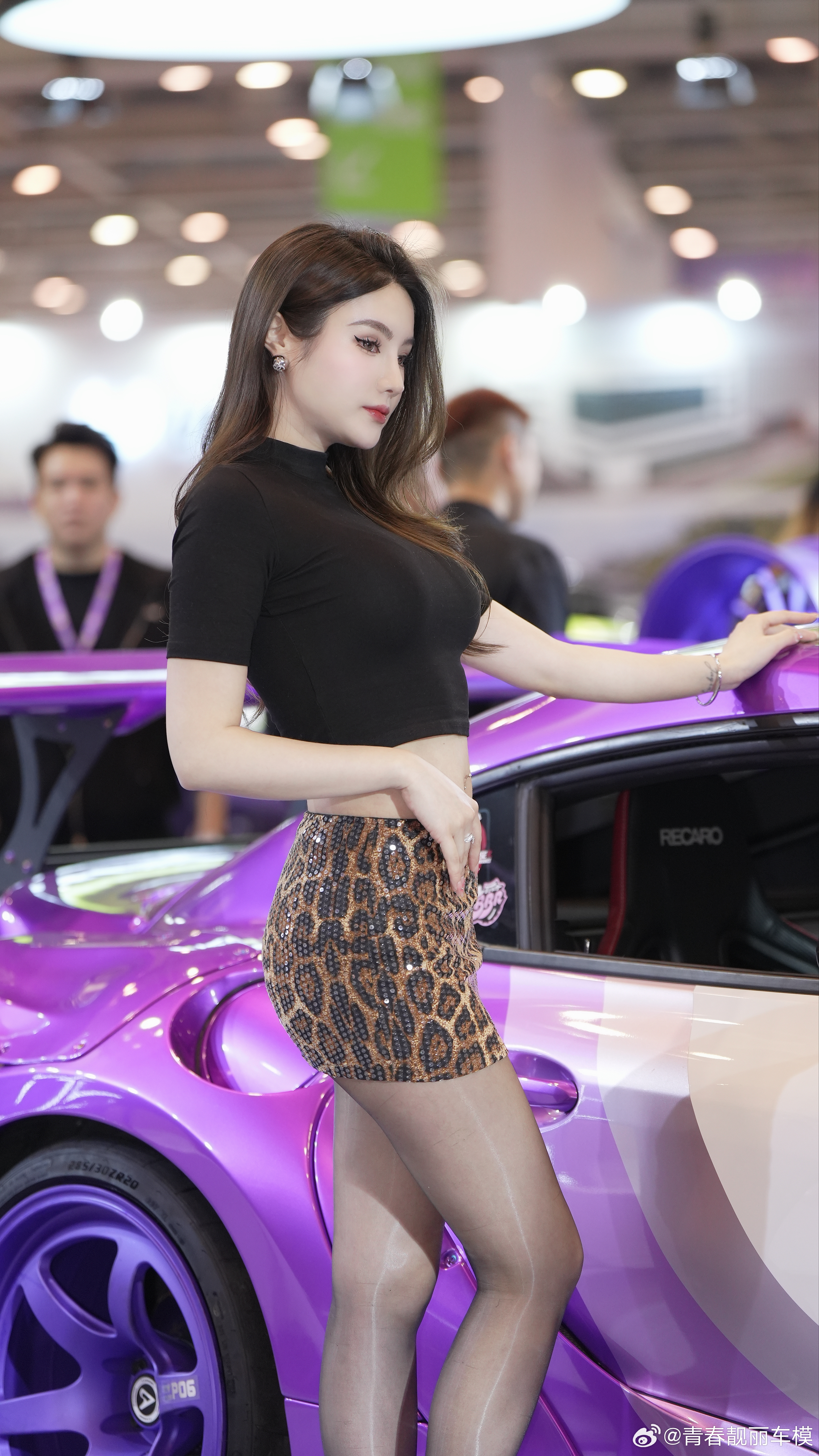紫焰跑车与豹纹短裙,是速度与野性的碰撞。苏州gt show青春靓丽车模 苏州