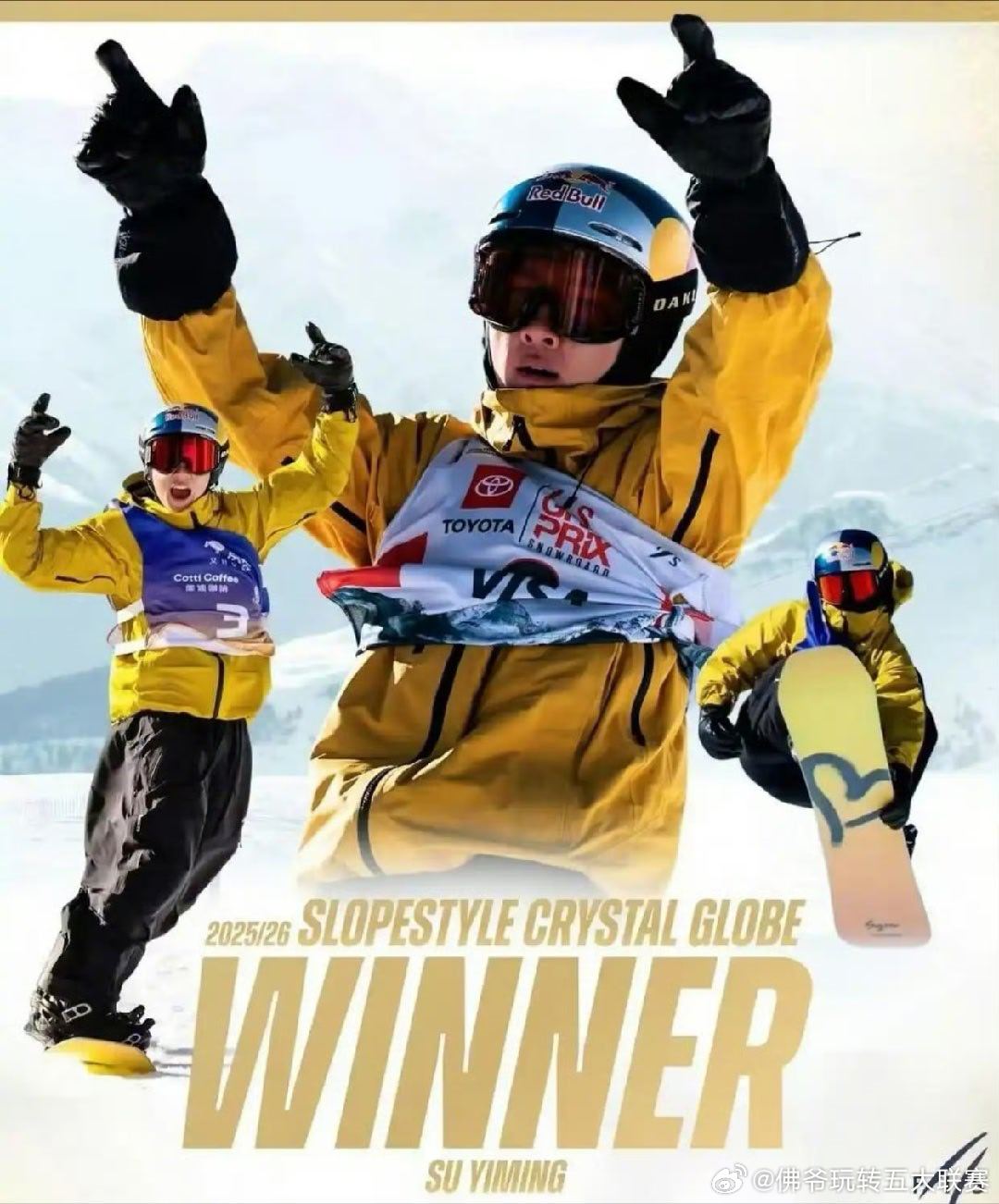 🔥再创历史!苏翊鸣斩获坡面障碍技巧赛季总冠军,实现单板滑雪世界杯双冠荣耀