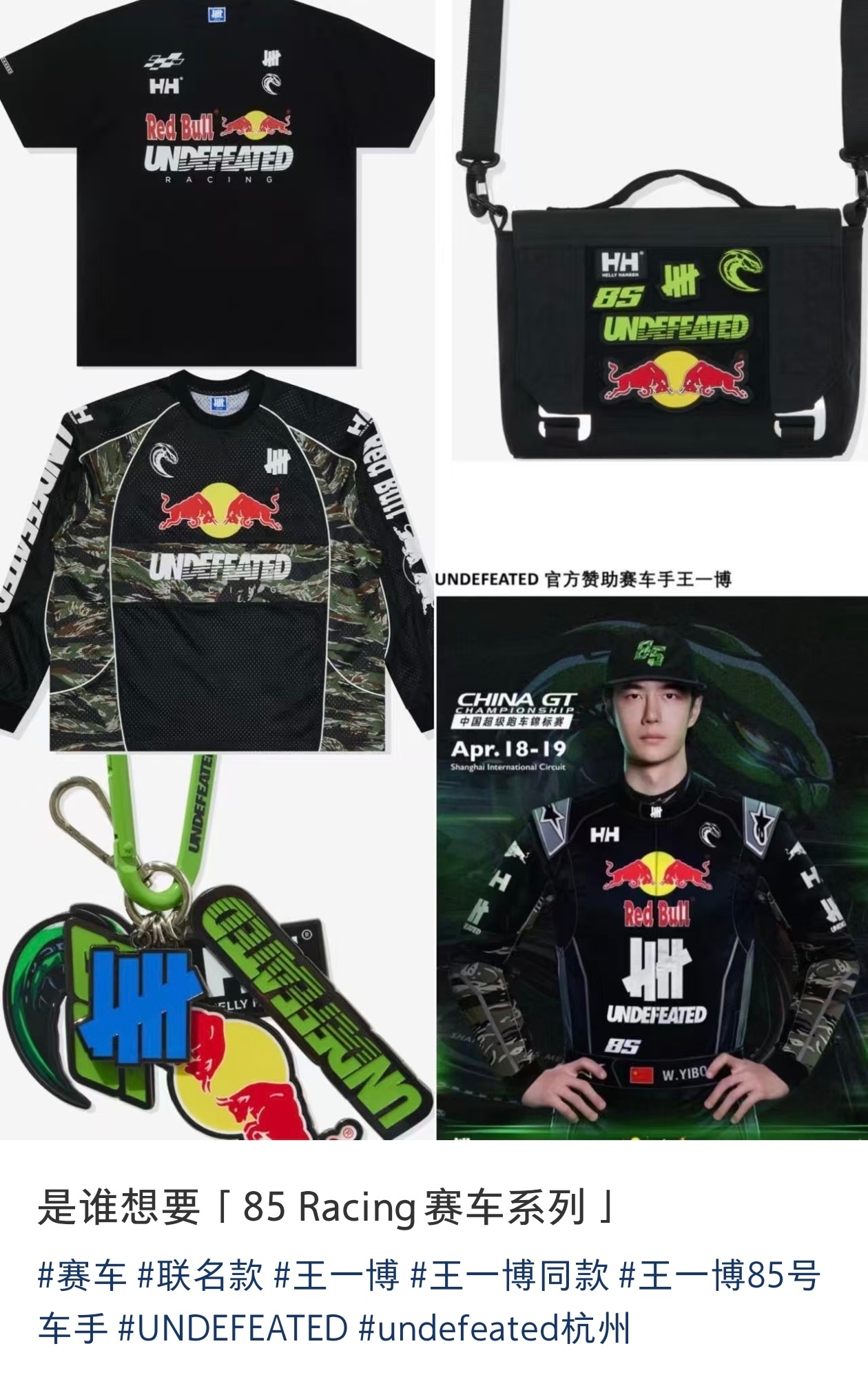 85 racing赛车系列undefeated联名,在没有大规模宣传下线上全平台售罄💚何止联名,只要是绿色摩托姐姐就买买买💚王一博一己之力带动各个品牌发财💚王一博