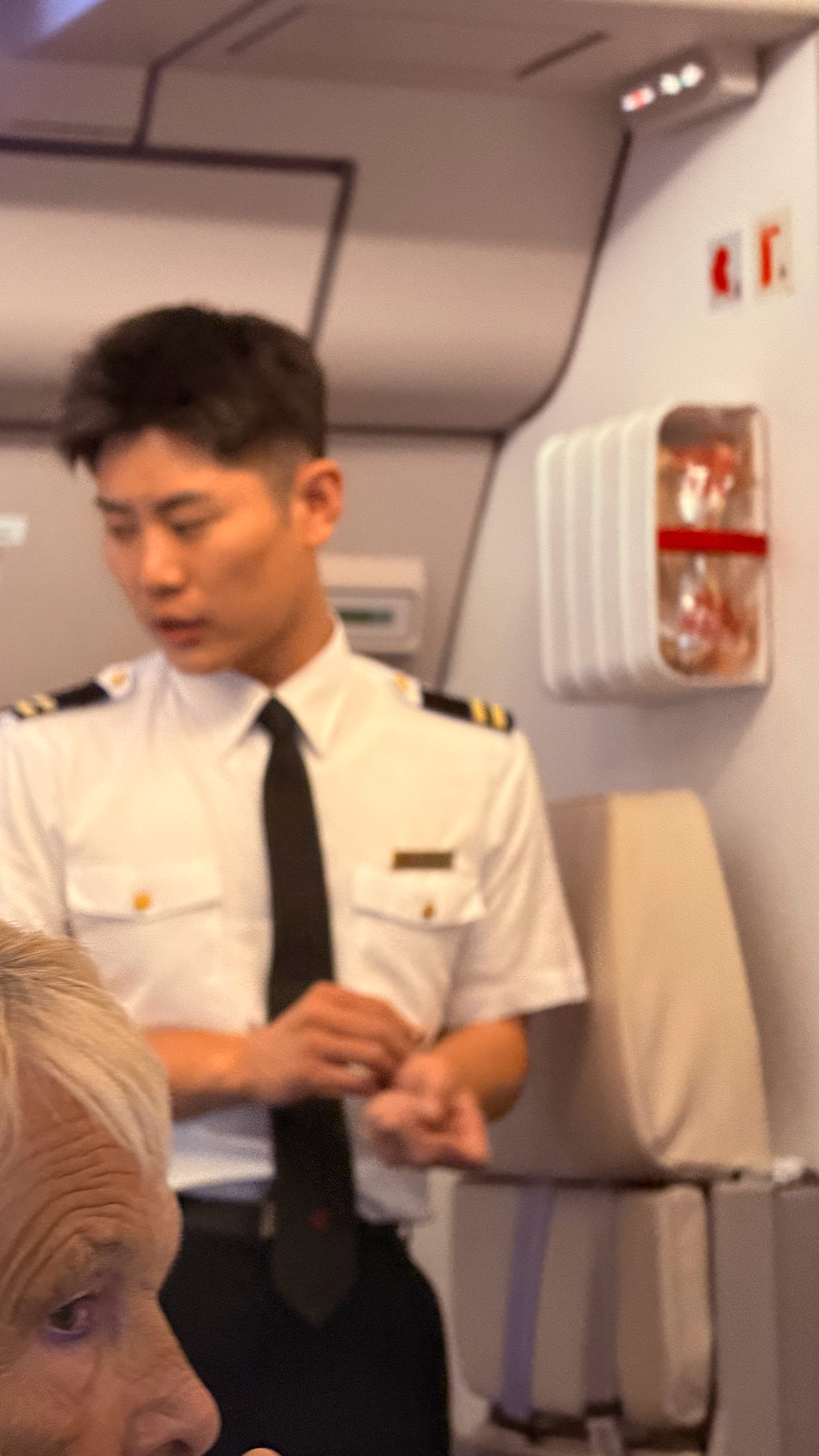 国航应该给这位空帅加个鸡腿!面对我伸不开的大长腿!空帅给我换了个能伸开腿的位置!