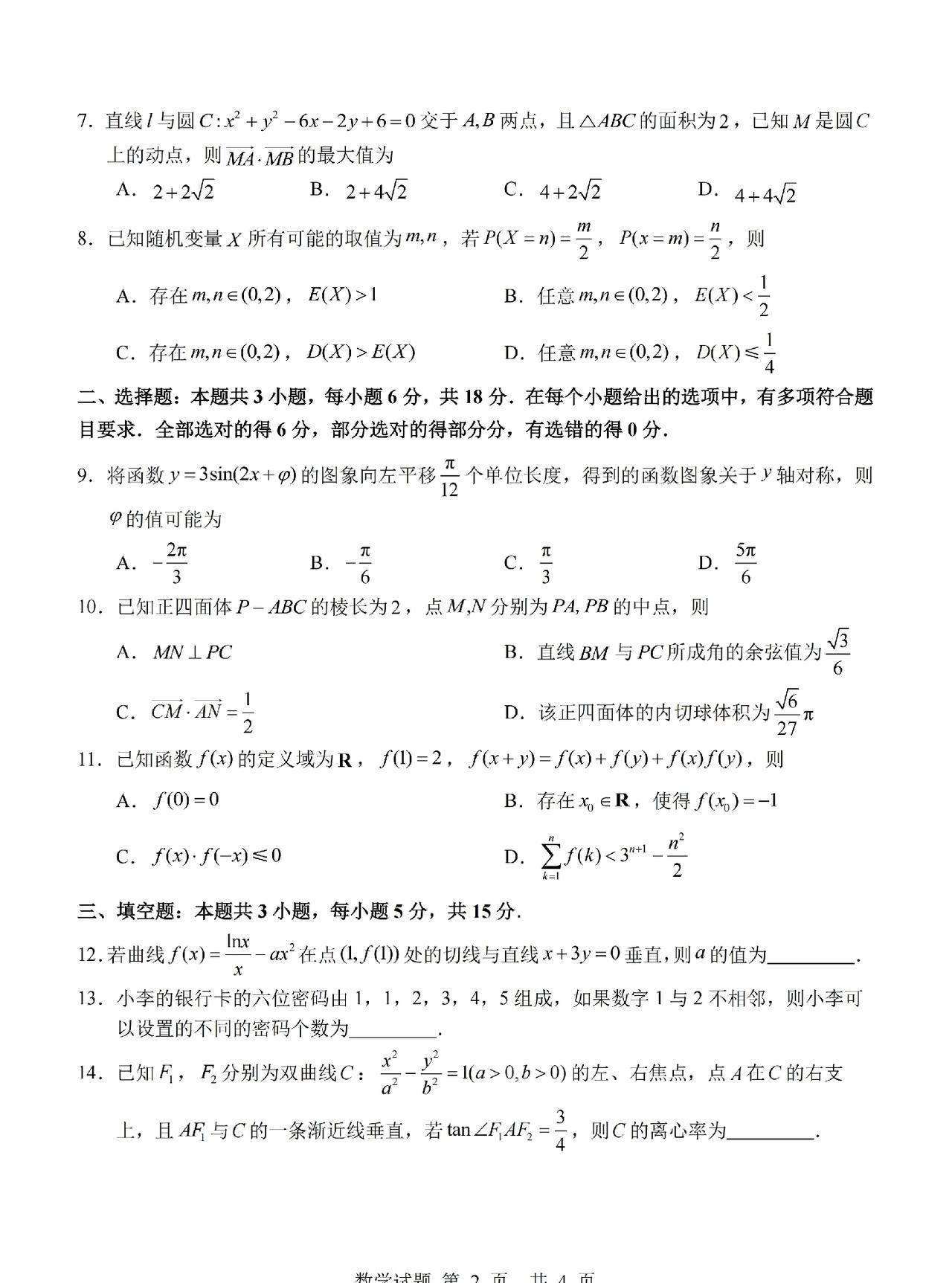 山东省2023级普通高中数学试题和山东省枣 庄 市2023级高三模拟考试数学试题(二调),第六页答案在评论区。