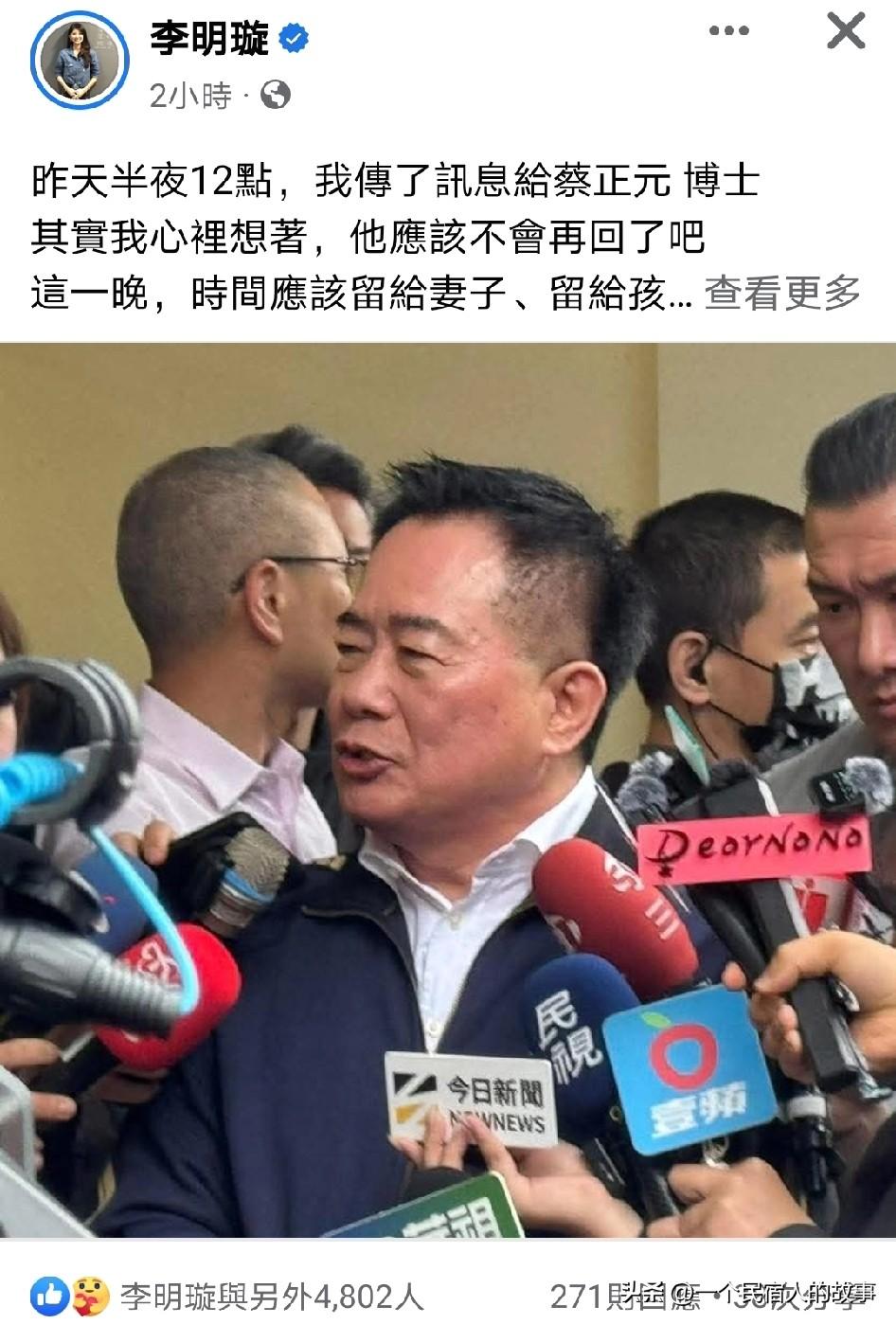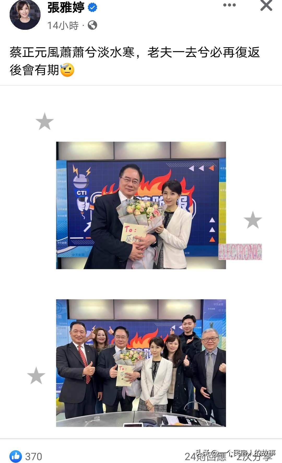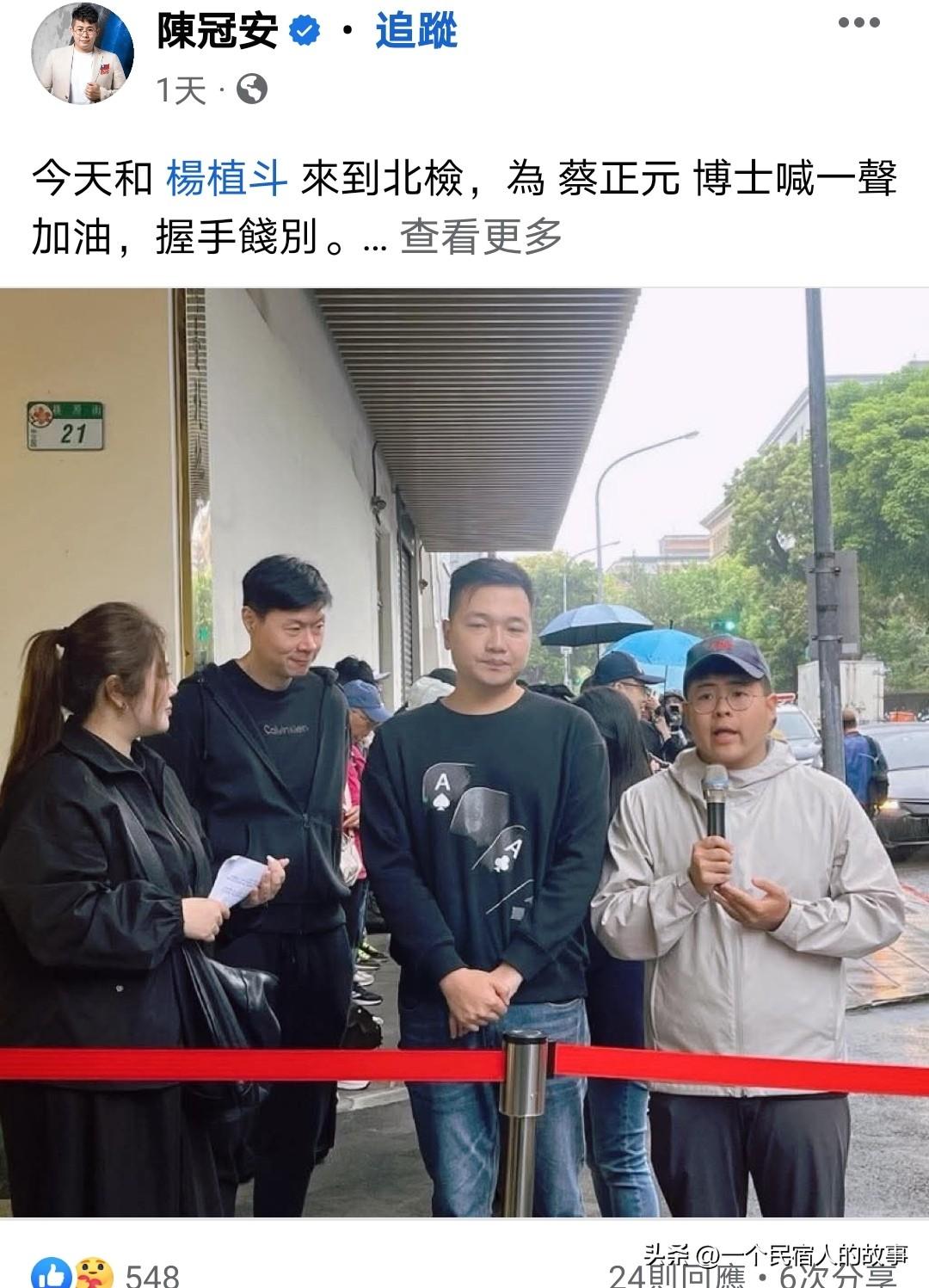 那些为蔡正元坐牢加油打气的人!大多数是中天的人! 说实话,蔡正元坐牢在大陆倒是炒的挺热的,在岛内虽然也是热闻,但在绿营都是嘲讽的,在蓝营白营大多数也是事不关己高高挂起的,毕竟在法律程序上蔡正元确实违法了,多数蓝白想从政基本都远离不想沾染蔡正元案。昨天发文为蔡正元大多数中天的主播、制作人,和几个偏蓝的网红。 人情冷暖蔡正元应该深有体会吧。