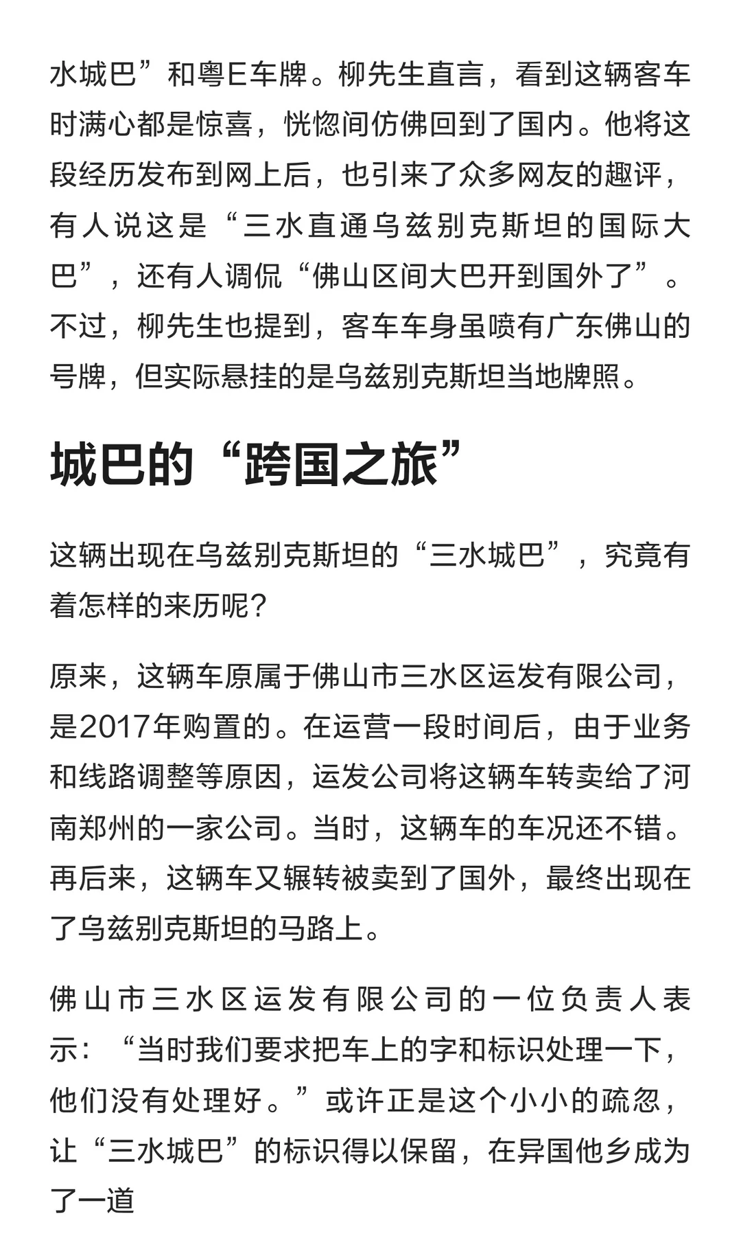 “佛山三水城巴”奔跑在乌兹别克斯坦