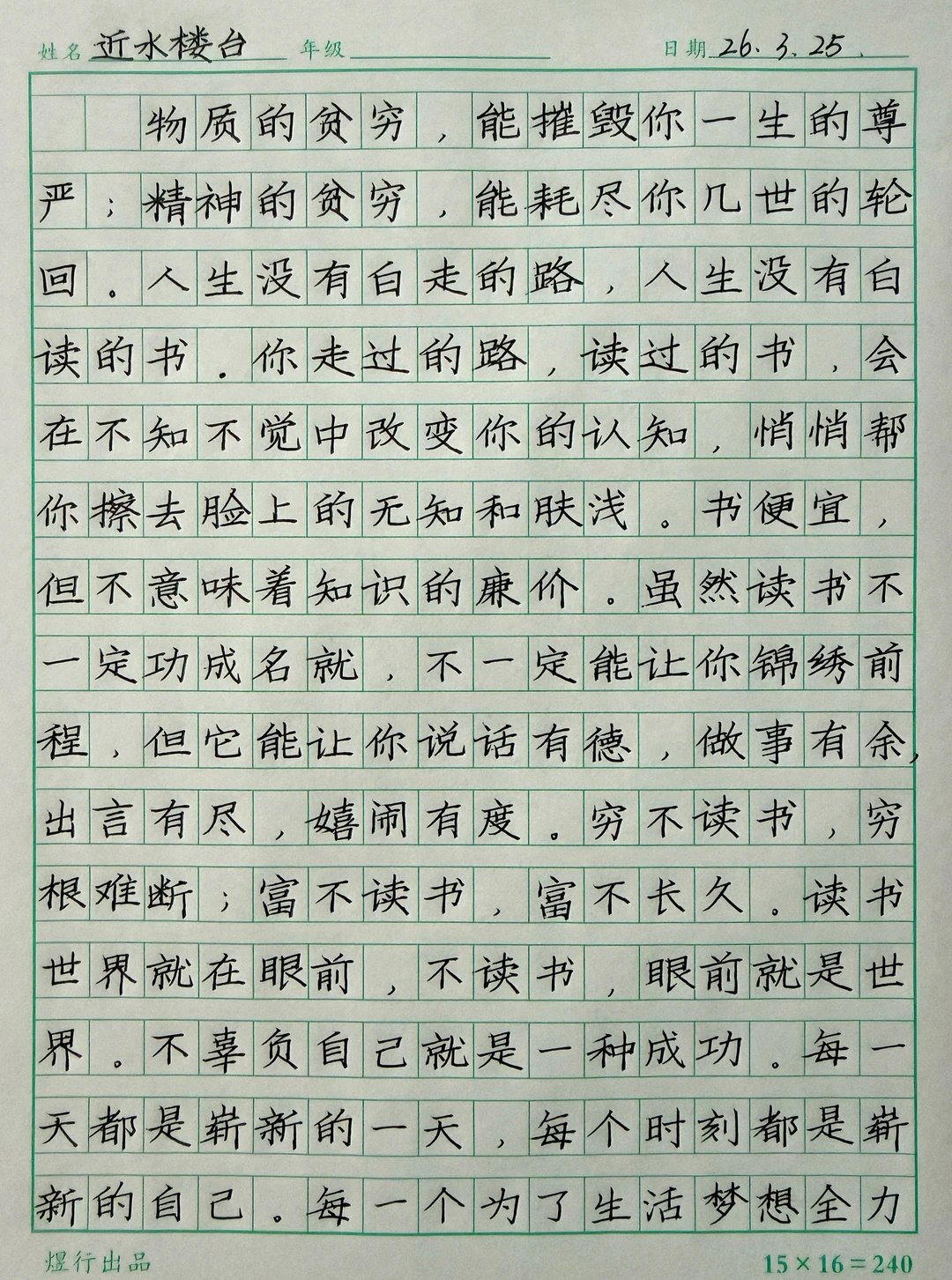 这几位师训老师快写越来越好了,方法科学,您的坚持才有意义,也更有动力。教写字是有功德的,你让一个孩子把字写好写快,这个孩子必然变得越来越优秀,那您就会得到相应的福报。楷书快写