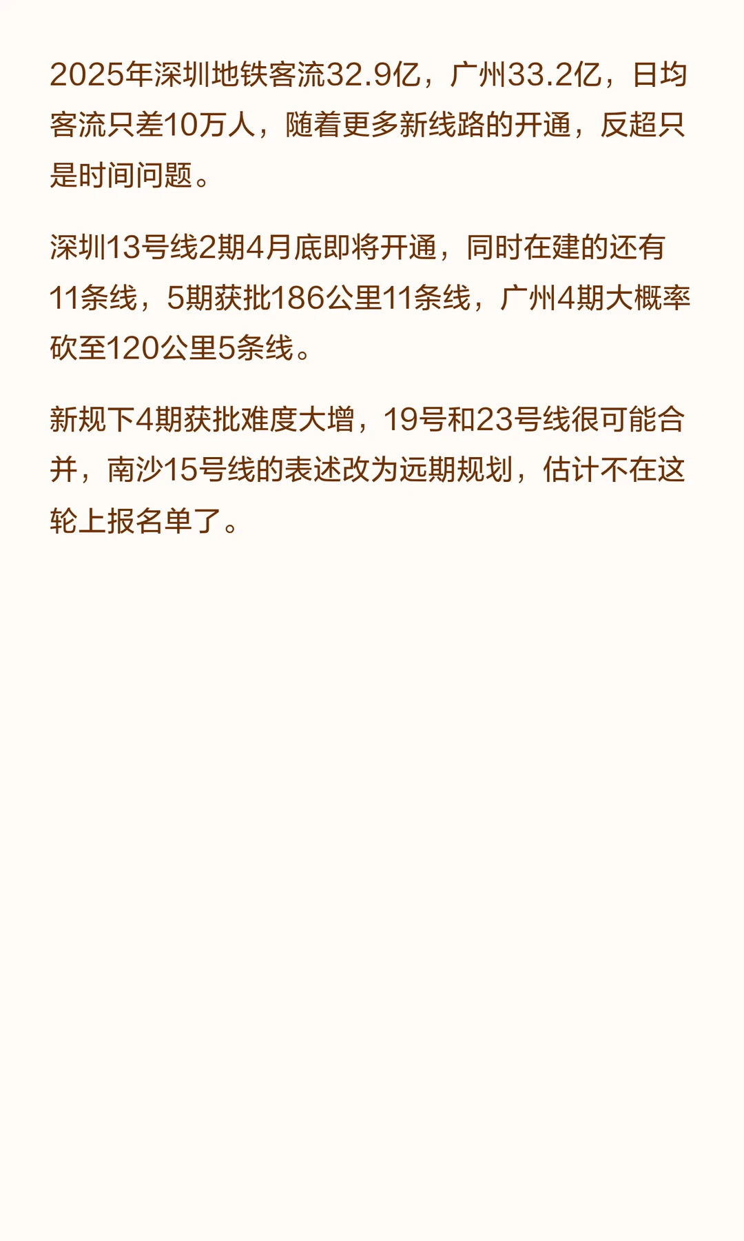 深圳地铁客流将超广州,还有11条线同时在建