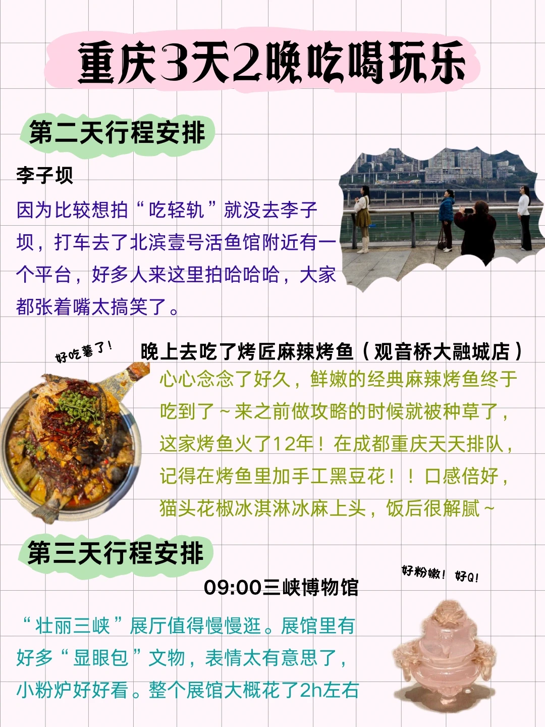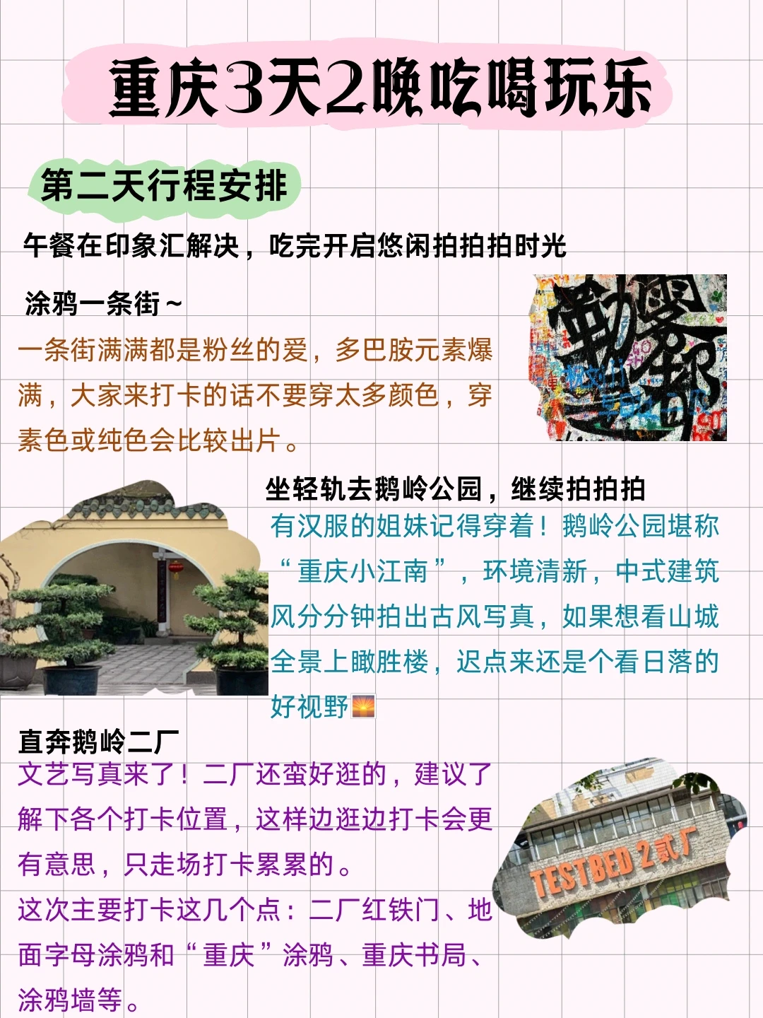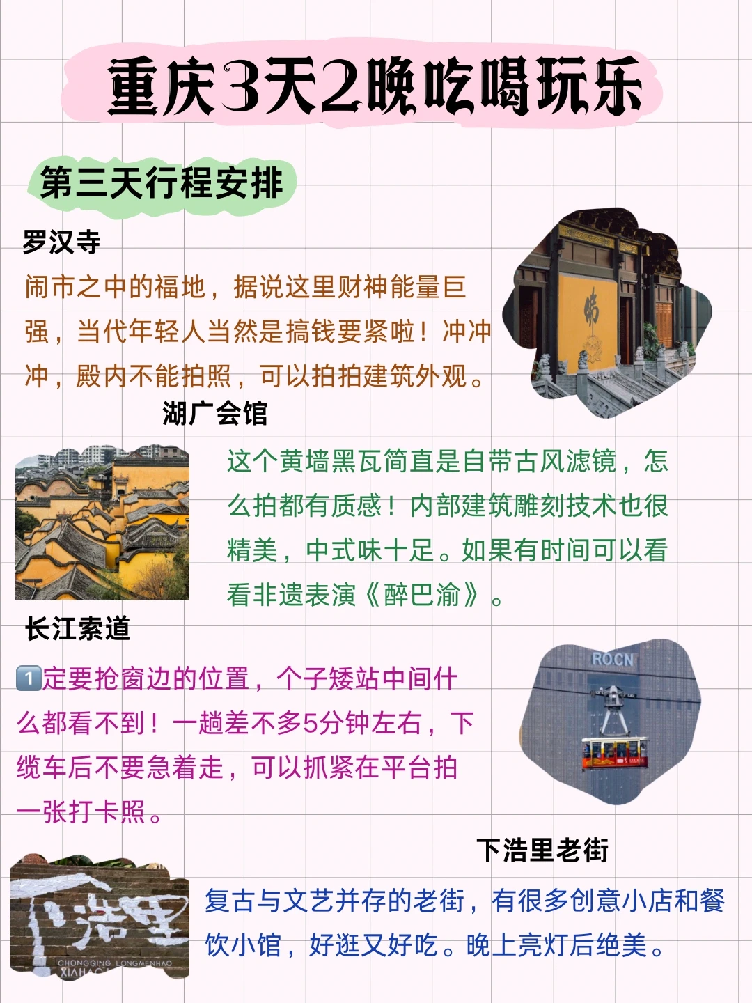 3️⃣重庆轻轨出行还是很方便的,我们的行程里基本都是轻轨+步行,这次南山那边的景点没去多少,去那里需要轻轨+公交/打车结合,下次再去!