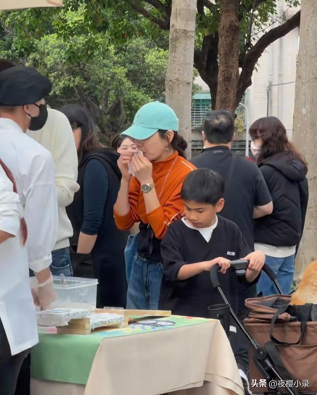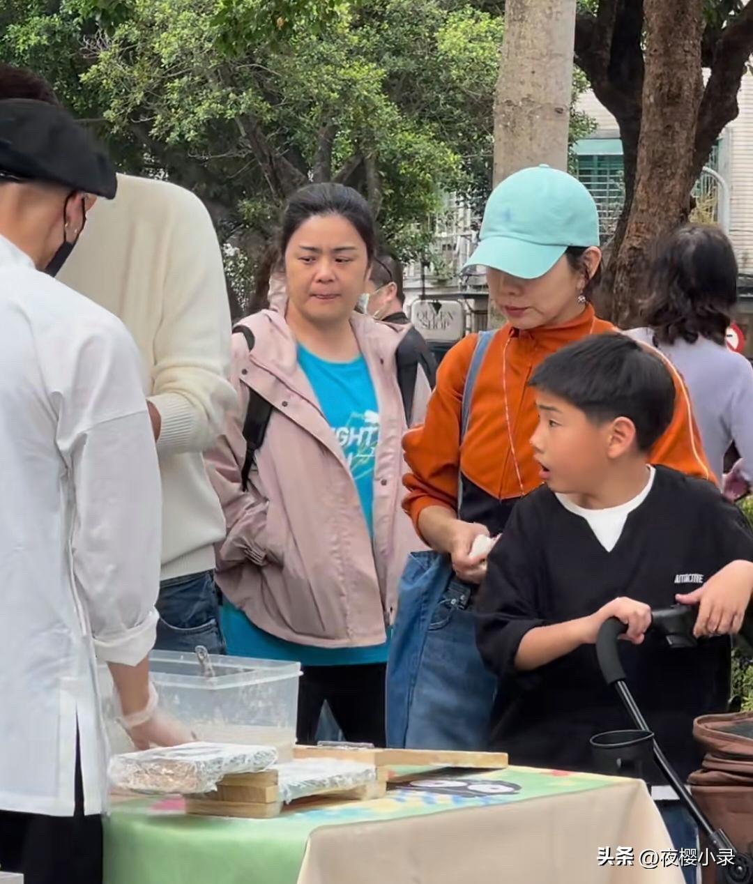 45岁陈嘉桦和老公儿子一起逛集市被偶遇,她的儿子长得好像爸爸,还挺帅气的,两只虎