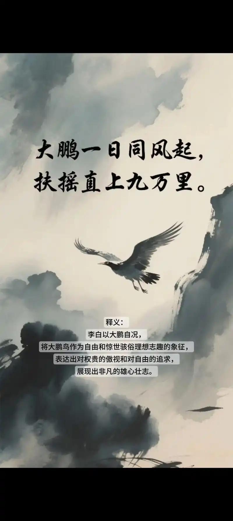 《起势赋》 十年潜龙困深渊,一朝乘风上九天。 天不生无用之人,地不长无名之草; 黄河尚有澄清日,岂可人无得运时; 雪压寒梅头不低,卧薪尝胆待佳期; 终有一日同风起,扶摇直上九万里。 龙作为神兽,本应翱翔天际,却因时机未到而蛰伏于深渊,象征有能力者在逆境中隐忍蓄力的漫长过程。一旦时机成熟(“乘风”),便能突破桎梏,直抵至高境界(“九天”),实现质的飞跃。 十年潜龙困深渊,一朝乘风上九天” 化用自《周易·乾卦》:“初九,潜龙勿用。” 比喻贤才未遇时机,宜静待奋起。 “乘风上九天”呼应李白《上李邕》:“大鹏一日同风起,扶摇直上九万里” ,借大鹏展翅喻人生逆袭。 “天不生无用之人,地不长无名之草” ,思想源于儒家“人皆可为尧舜”及道家“万物平等”观。 类似表达见于《菜根谭》:“天地有大美而不言,四时有明法而不议”,强调自然与人的价值自存。 “黄河尚有澄清日,岂可人无得运时”,“黄河清”古以为祥瑞,《易纬乾凿度》有“圣人受命,黄河清”。此处以黄河终将澄清,比喻命运终会转机。 “雪压寒梅头不低,卧薪尝胆待佳期” “卧薪尝胆”典出《史记·越王勾践世家》,勾践败后忍辱负重,终复国雪耻。 “寒梅”象征坚韧,《早梅》中“墙角数枝梅,凌寒独自开”即为此类意象。 “终有一日同风起,扶摇直上九万里” 直接引用李白《上李邕》,而李白原文又源自《庄子·逍遥游》:“鹏之徙于南冥也,水击三千里,抟扶摇而上者九万里。” 庄子原意是超脱世俗、追求精神自由,此处转为对事业腾飞的强烈期许。 《起势赋》 十年潜龙困深渊,一朝乘风上九天。 气势吞山河,锋芒破穹寰; 所向皆无阻,无人可敢拦; 纵处低谷犹为龙,不困浅滩志在巅; 黎明已破晓,乾坤掌中玄; 潜龙终破壁,腾飞在眼前。 《起势赋》并非古代传世文献,而是现代网络创作的励志仿古骈文,其内容融合了大量经典典故与诗意化表达,用以激励人心、鼓舞斗志。 尽管常被误认为出自王勃或李白等唐代文人之手,但并无任何古籍、史书或权威文献收录此篇,包括《全唐文》《历代赋汇》等均无记载 。所谓“王勃作《起势赋》”的说法,实为网络误传 。你所见的全文,实为当代人结合古典意象创作并不断演化的文本。 七律.潜龙抒怀 词/海哥 十年潜龙困深渊,一朝乘风上九天。 雾锁寒潭藏浩气,云开碧宇揽长烟。 胸藏丘壑心犹静,袖卷星河意自翩。 不与凡尘争俗利,独擎日月照山川。 它虽非古文真迹,却是数字时代集体情绪的文学投射——将古典符号重新组合,构建出一种“传统加持”的励志话语。其传播力正源于:对经典语句的熟悉感、对逆袭叙事的普遍渴望: 短视频平台对“金句+背景音乐”的高效包装 如今,这类文本已成为一种新型文化现象,如同古代的“劝世文”,只是换了媒介与修辞。