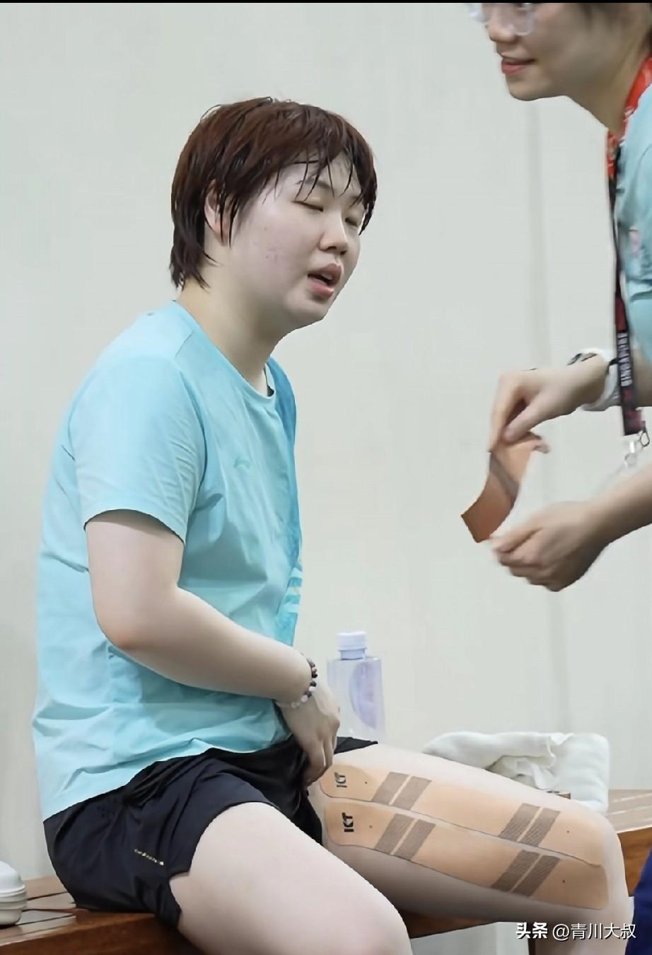 太心疼蒯曼了,最近一直带伤作战! 昨天的训练中, 我看她又贴满肌肉贴, 还是莎莎医护给贴的。 我记得重庆冠军赛, 她和莎莎那场比赛, 大丫头靠局间和暂停换肌肉贴, 换了两三次都没贴好! 由于时间短, 总贴不好, 往下掉, 还让裁判催, 太惨了! 这次澳门世界杯, 可以跟着张本智和学, 叫一下医疗暂停!